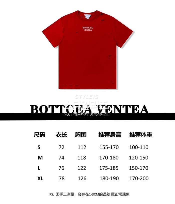 ボッテガヴェネタメンズクルーネックレッド半袖Tシャツt0206
