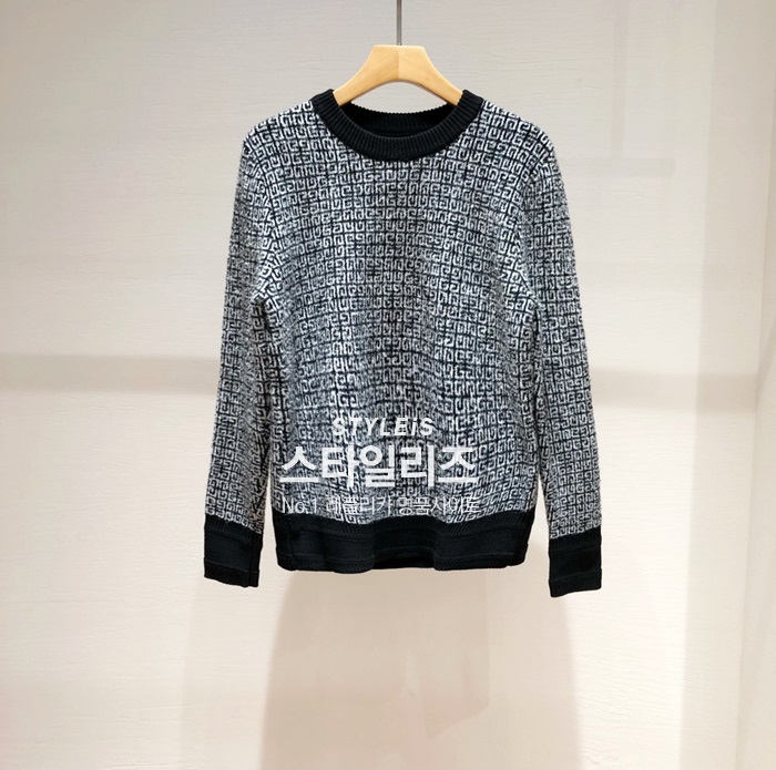 ジバンシィメンズモダンクルーネックブラックニットv0601