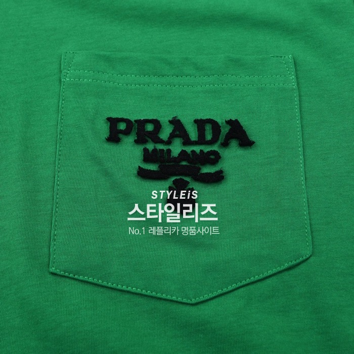 プラダメンズクルーネックグリーン半袖Tシャツa02575