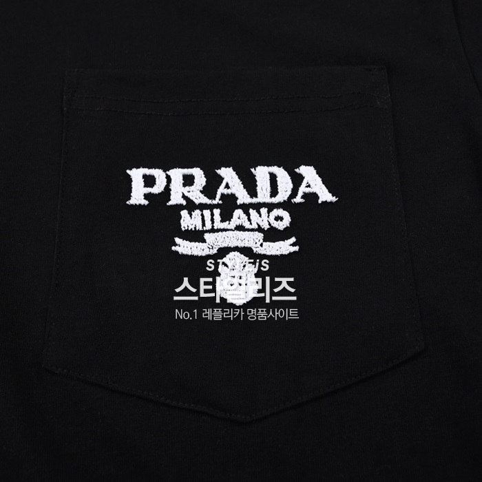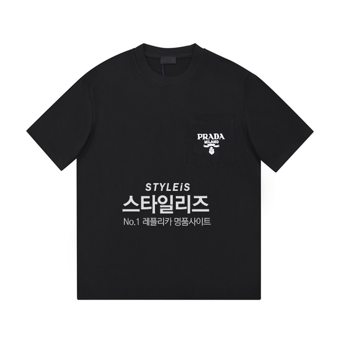 プラダメンズクルーネックブラック半袖Tシャツa02577