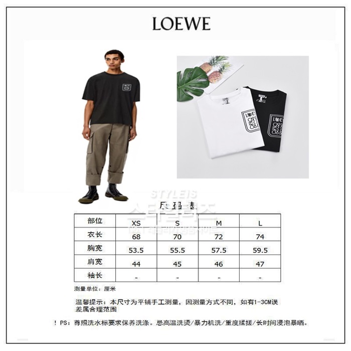 ロエベメンズイニシャルブラック半袖Tシャツe0553