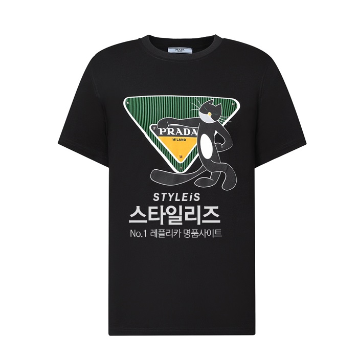 プラダレディース用クルーネックブラック半袖Tシャツa02578