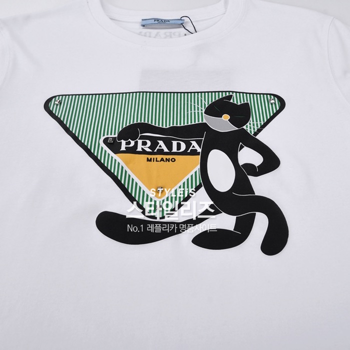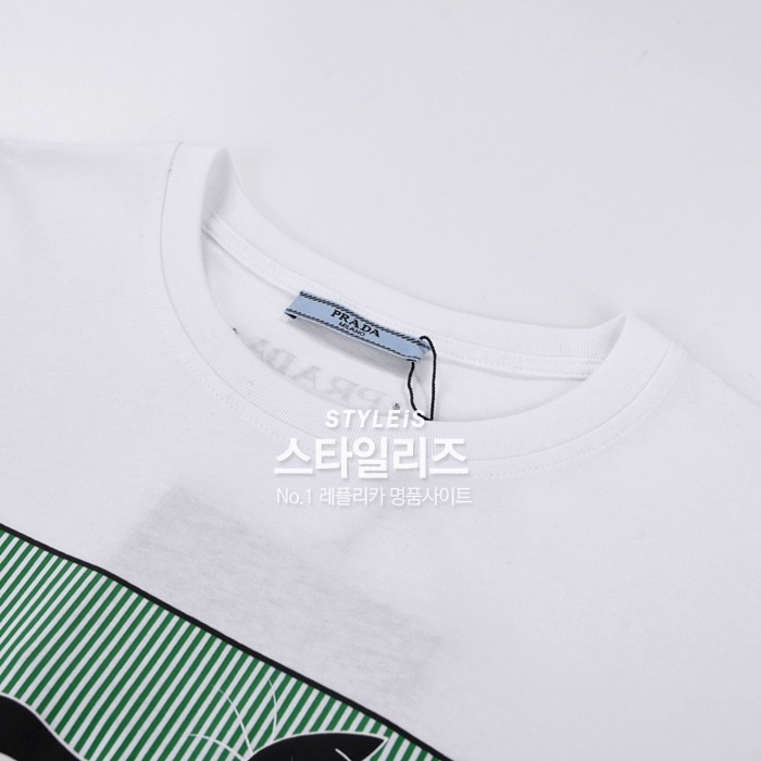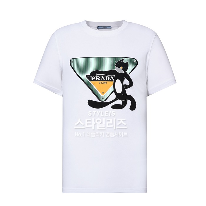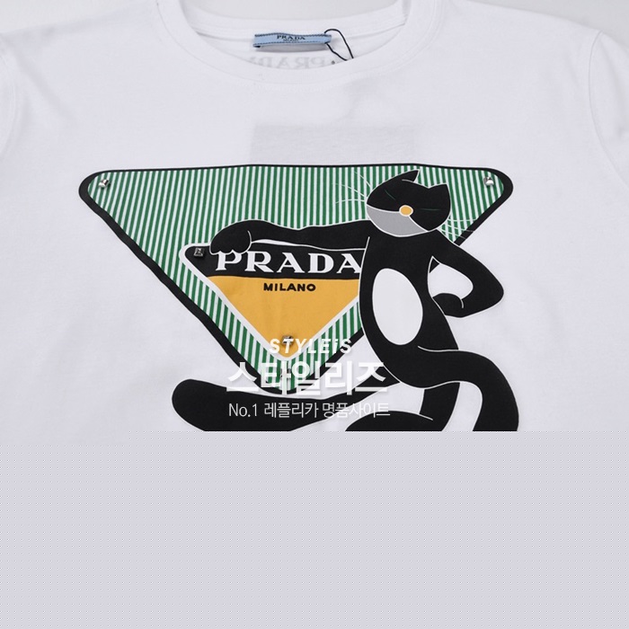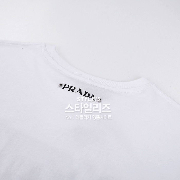 プラダレディース用クルーネックホワイト半袖Tシャツa02579