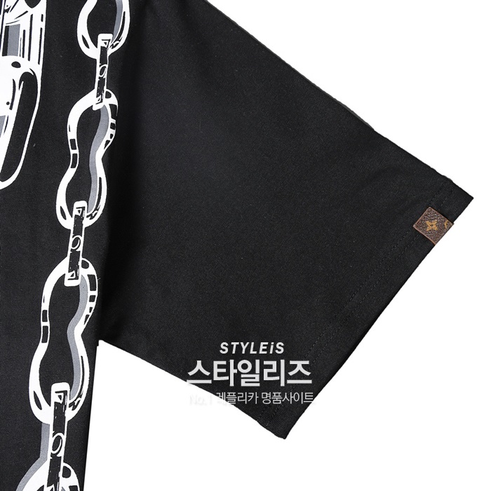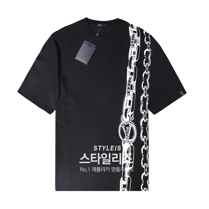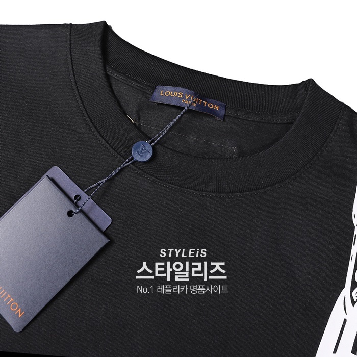 ルイヴィトンメンズクルーネックブラック半袖Tシャツu03928