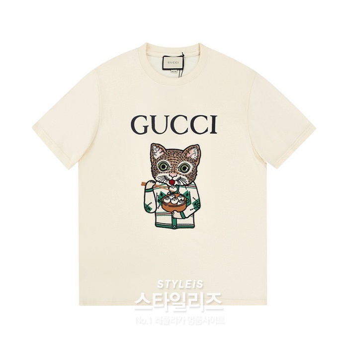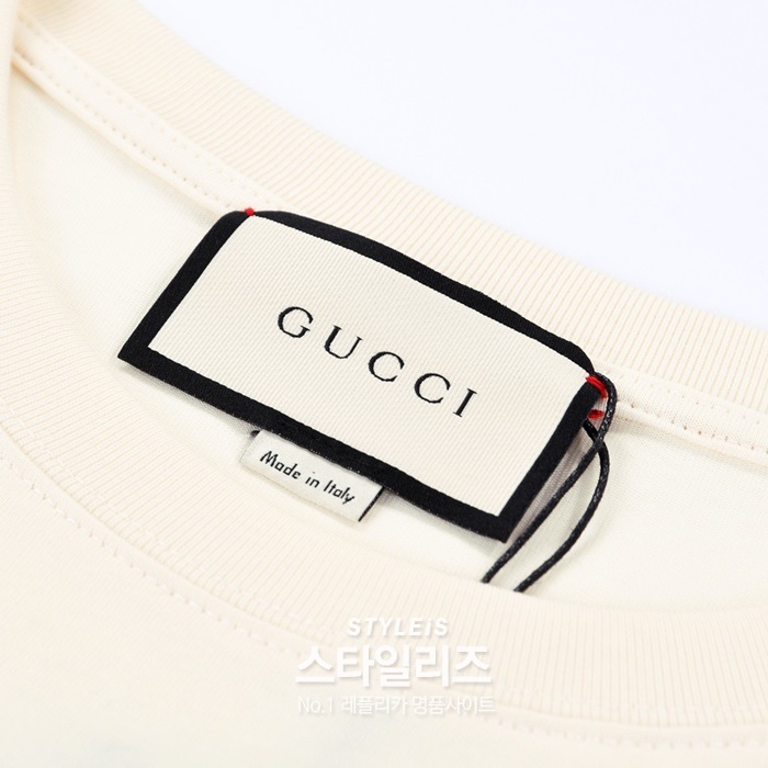 グッチメンズクルーネックアイボリー半袖Tシャツc04581