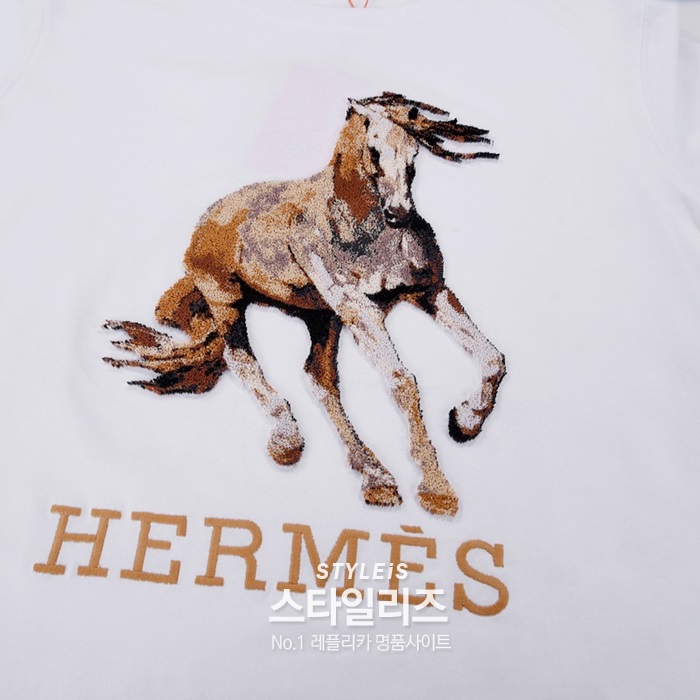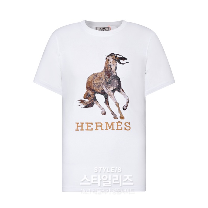 エルメスメンズクルーネックホワイト半袖Tシャツr0735