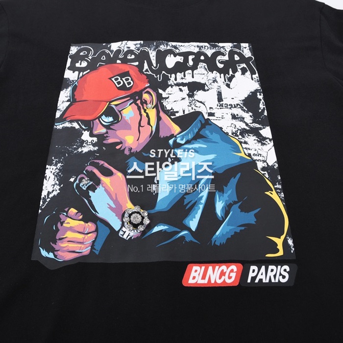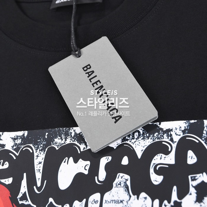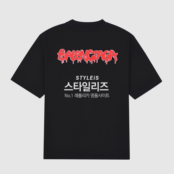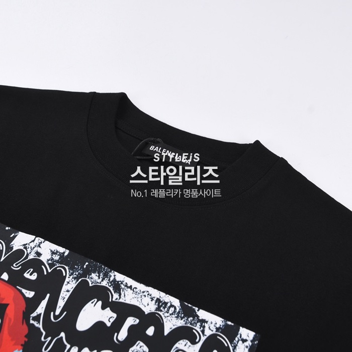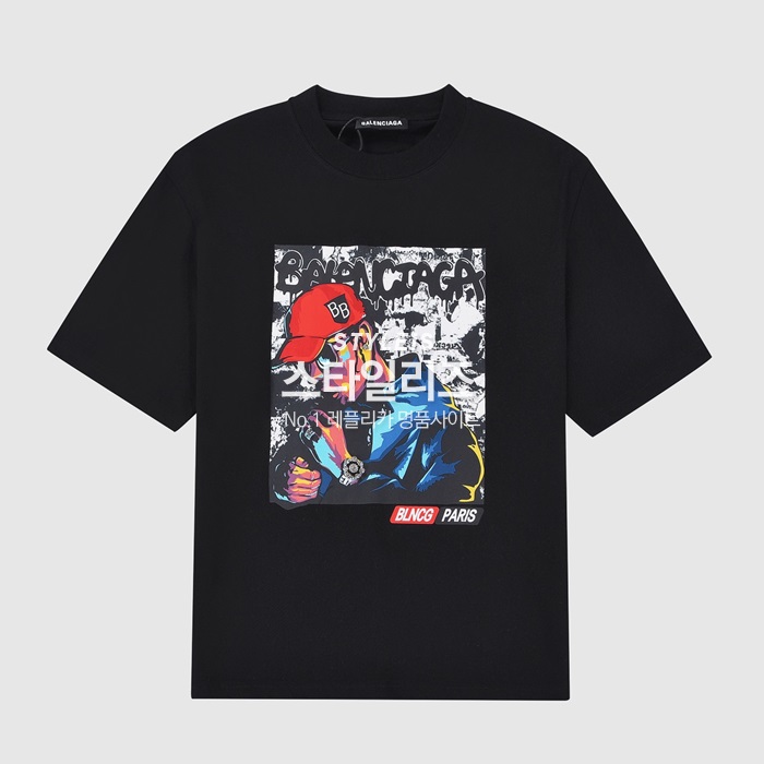 バレンシアガユニセックスクルーネックブラック半袖Tシャツl01289
