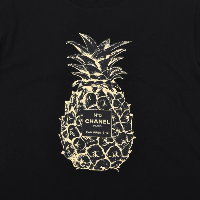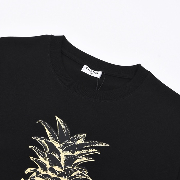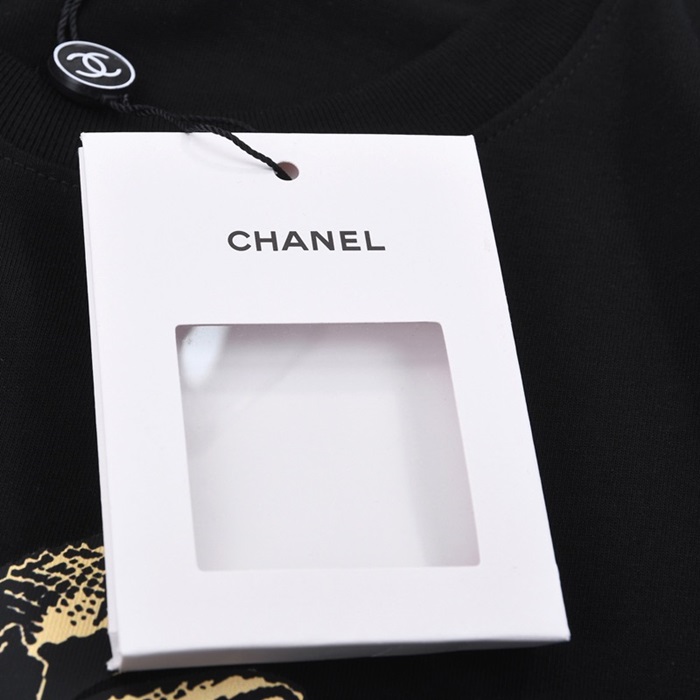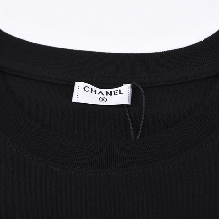シャネルユニセックスクルーネックブラック半袖Tシャツl0835