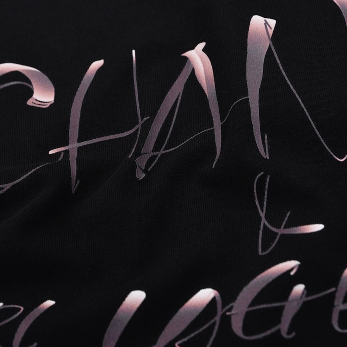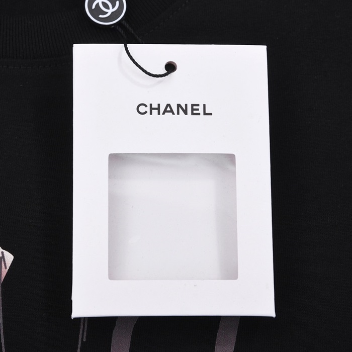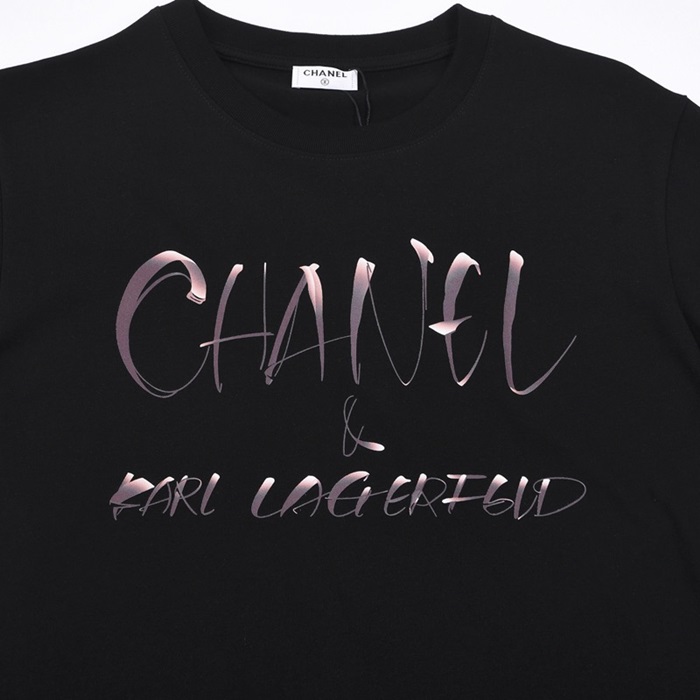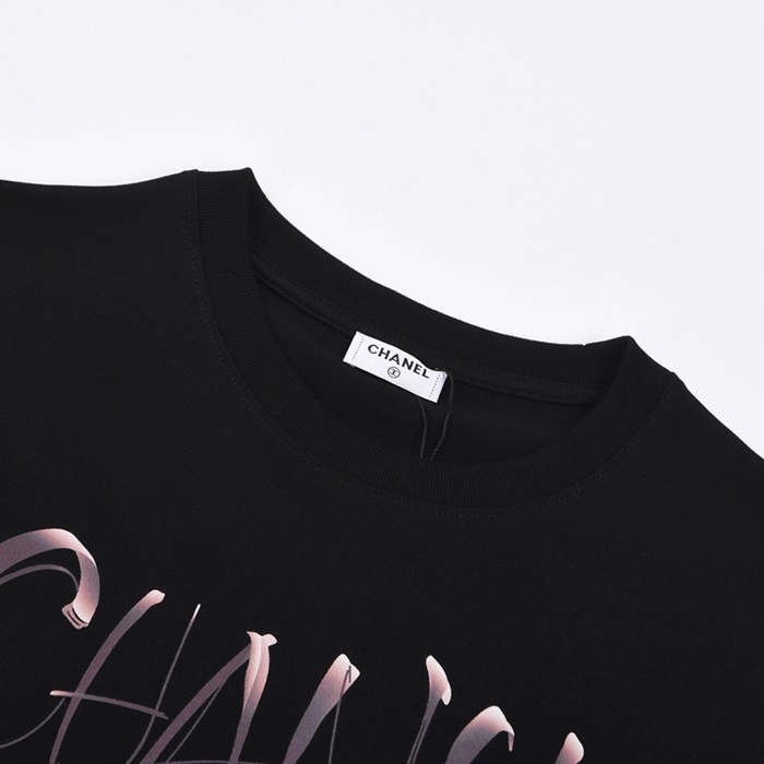 シャネルユニセックスクルーネックブラック半袖Tシャツl0837