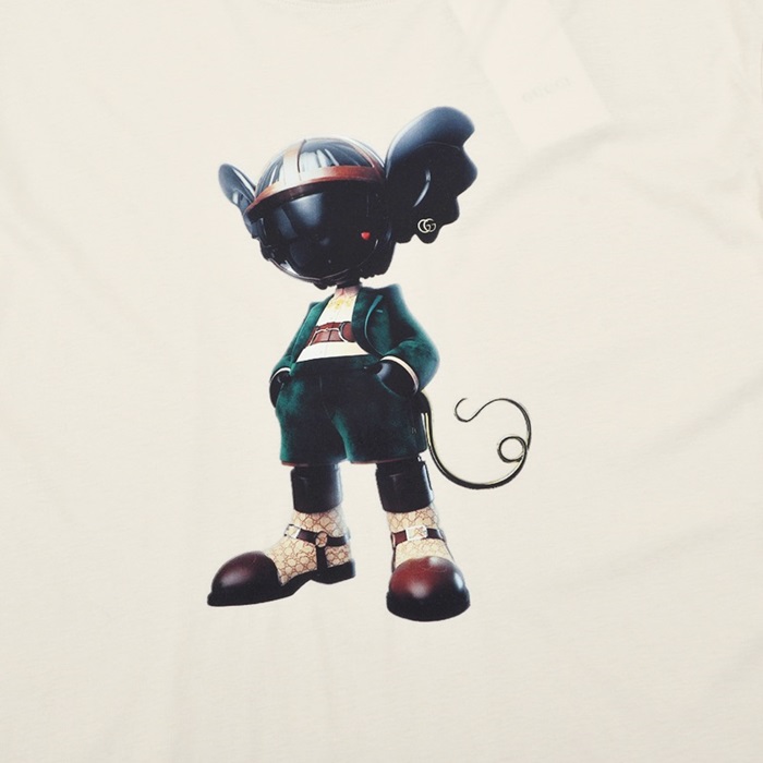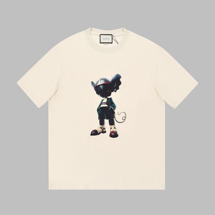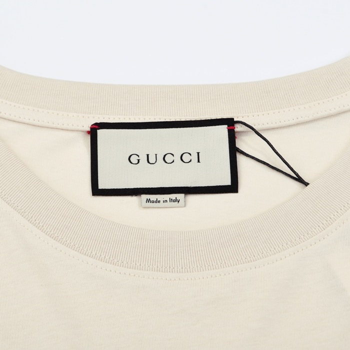 グッチメンズクルーネックアイボリー半袖Tシャツc04590