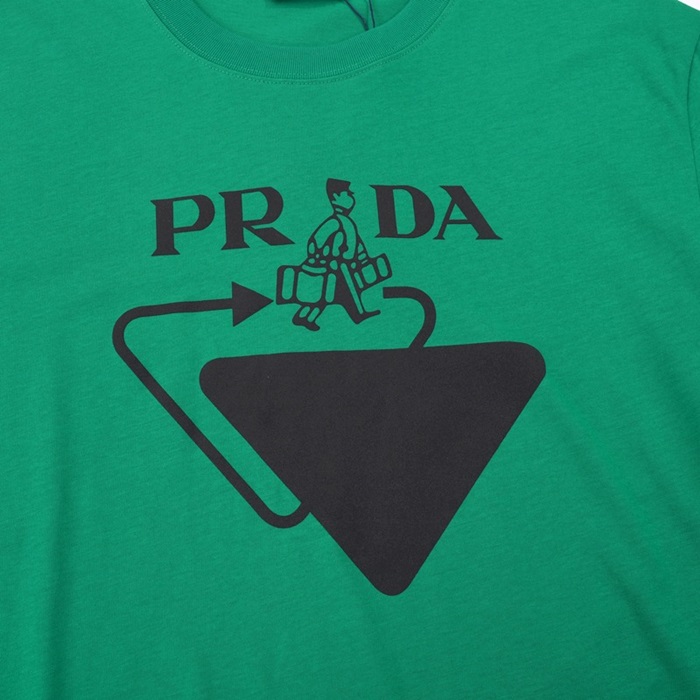 プラダメンズクルーネックグリーン半袖Tシャツa02582