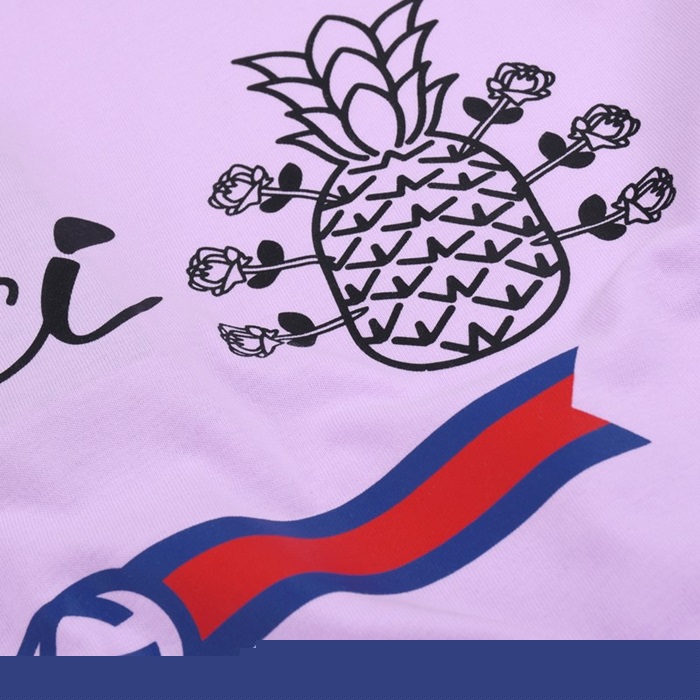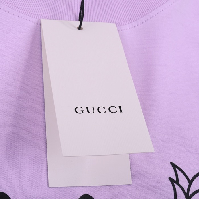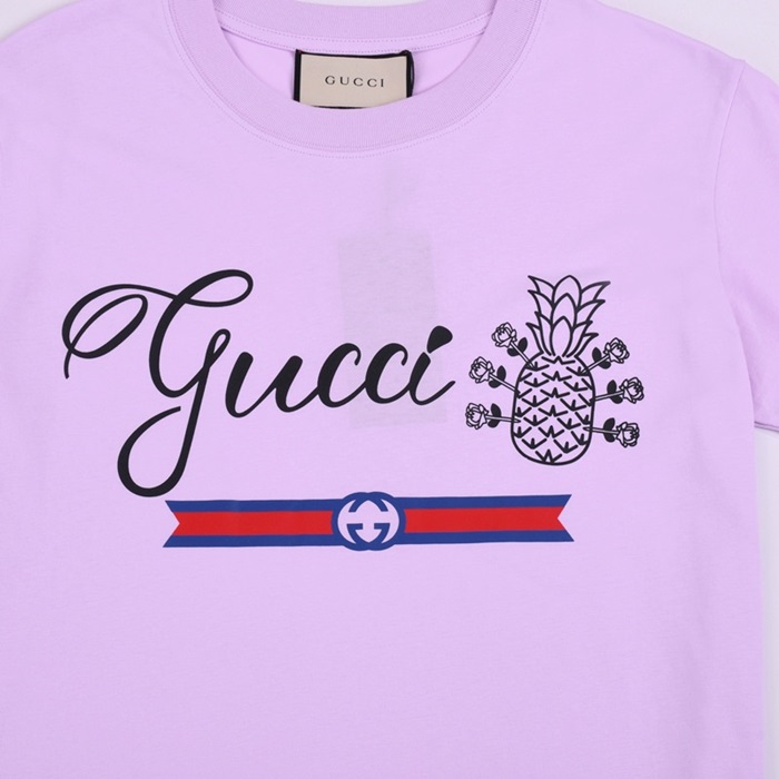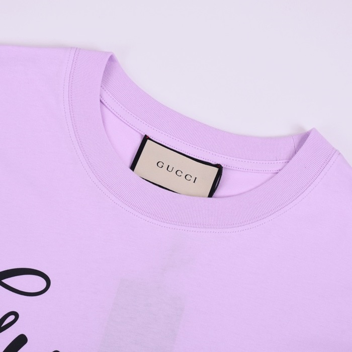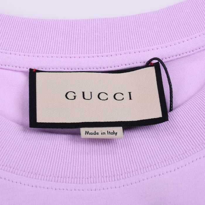グッチユニセックスクルーネックパープル半袖Tシャツc04599