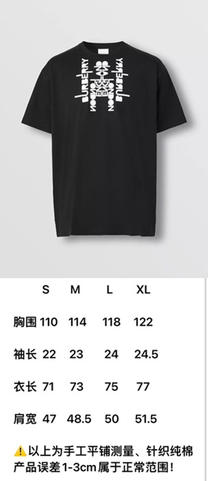 バーバリーメンズクルーネックブラック半袖Tシャツr04213
