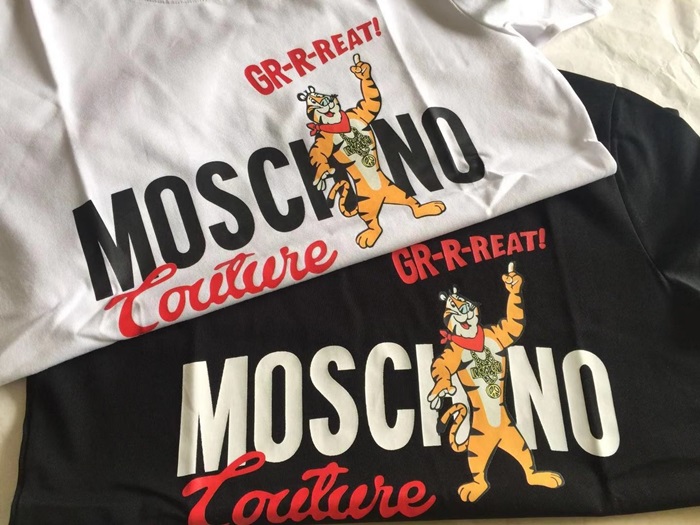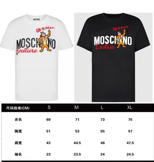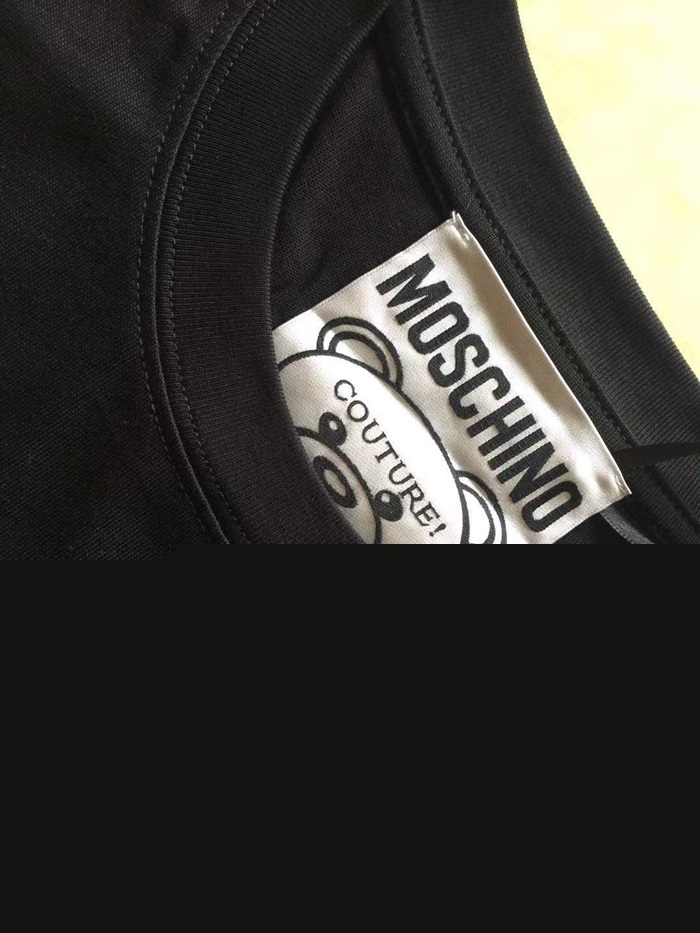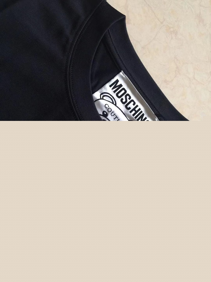 モスキーノユニセックスクルーネックブラック半袖Tシャツs0215