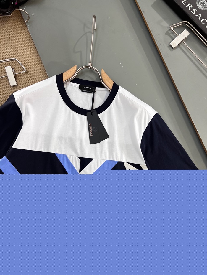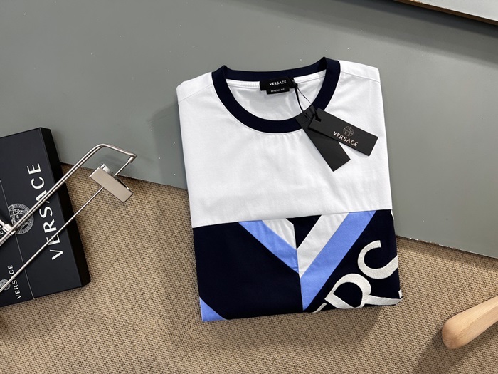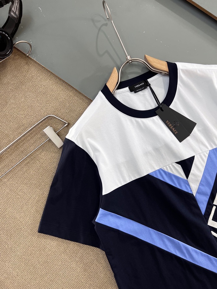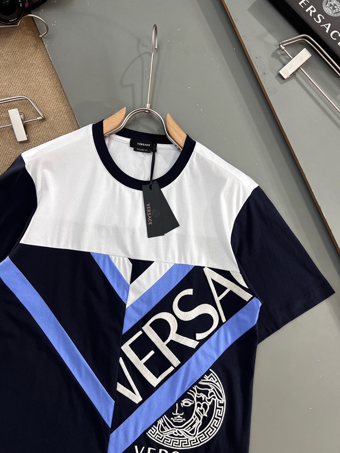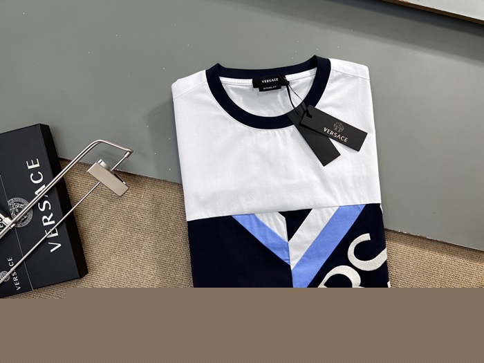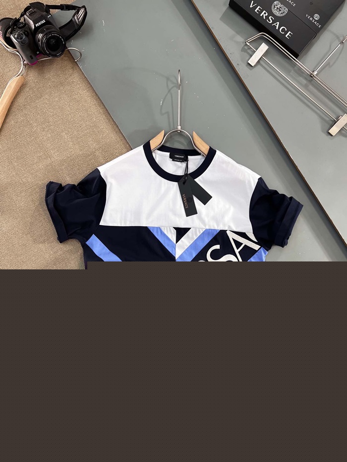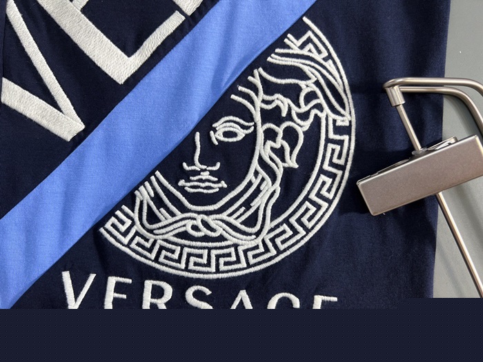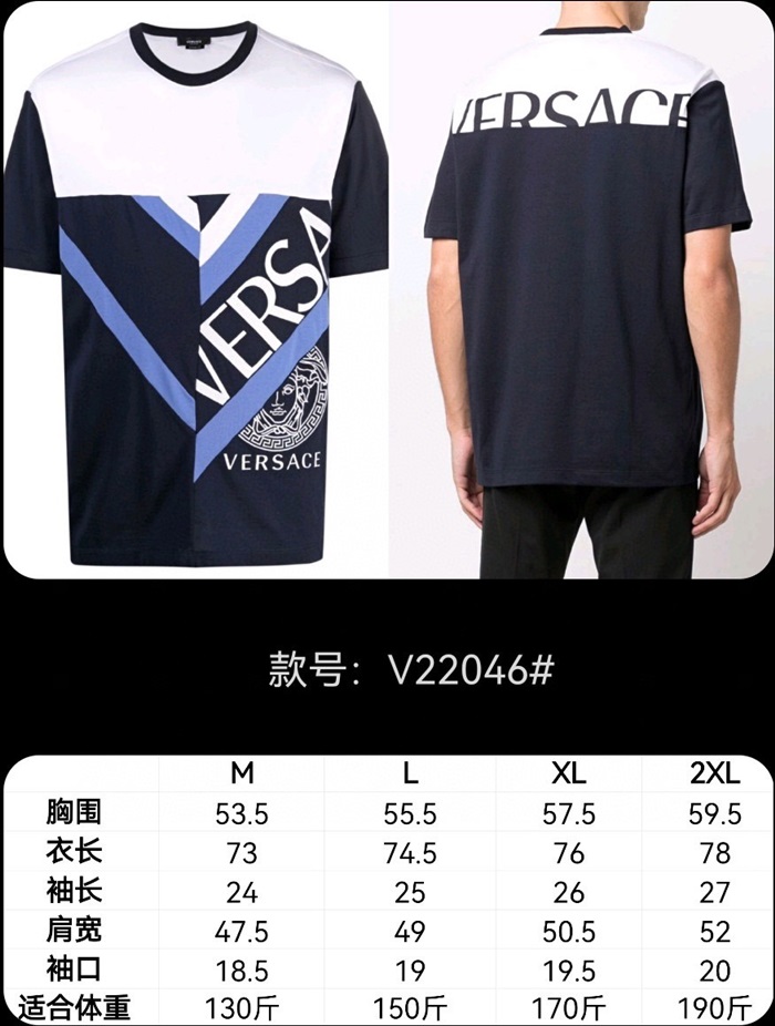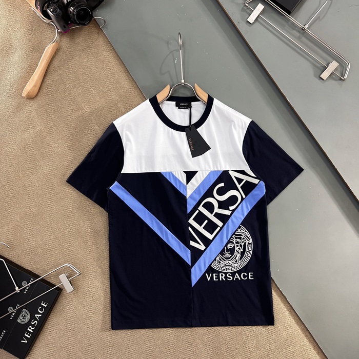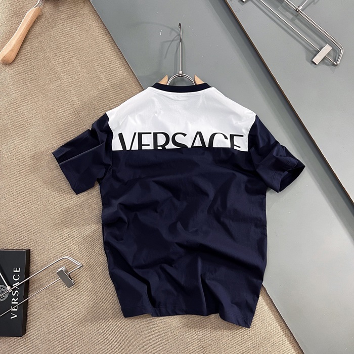 ヴェルサーチェメンズクルーネックブラック半袖Tシャツr0882