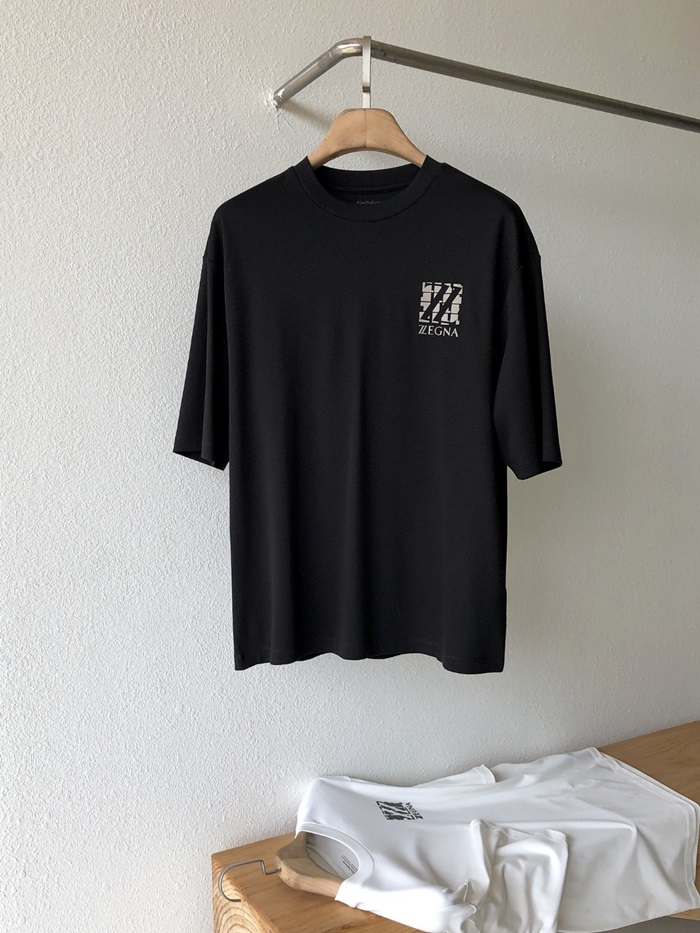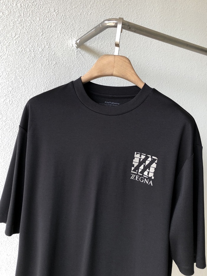 エルメネジルドゼニアメンズクルーネックブラック半袖Tシャツg0335