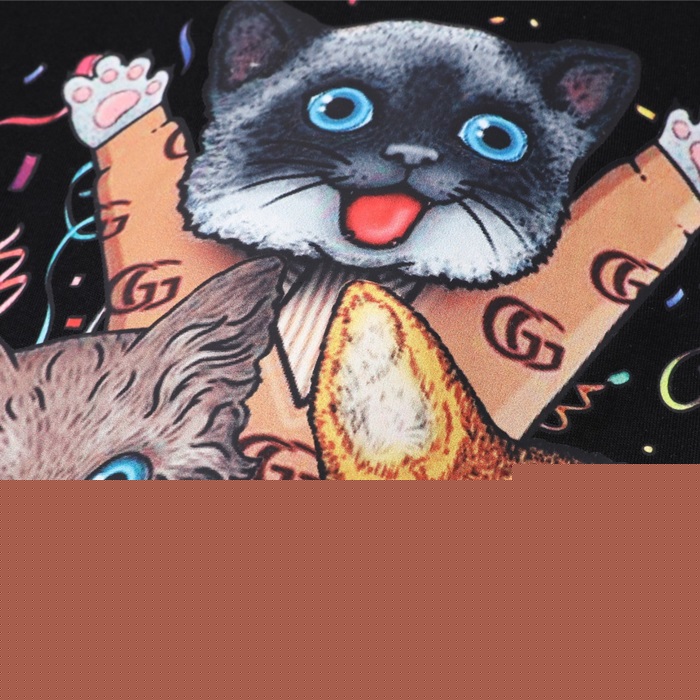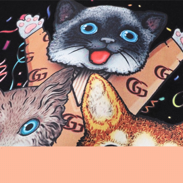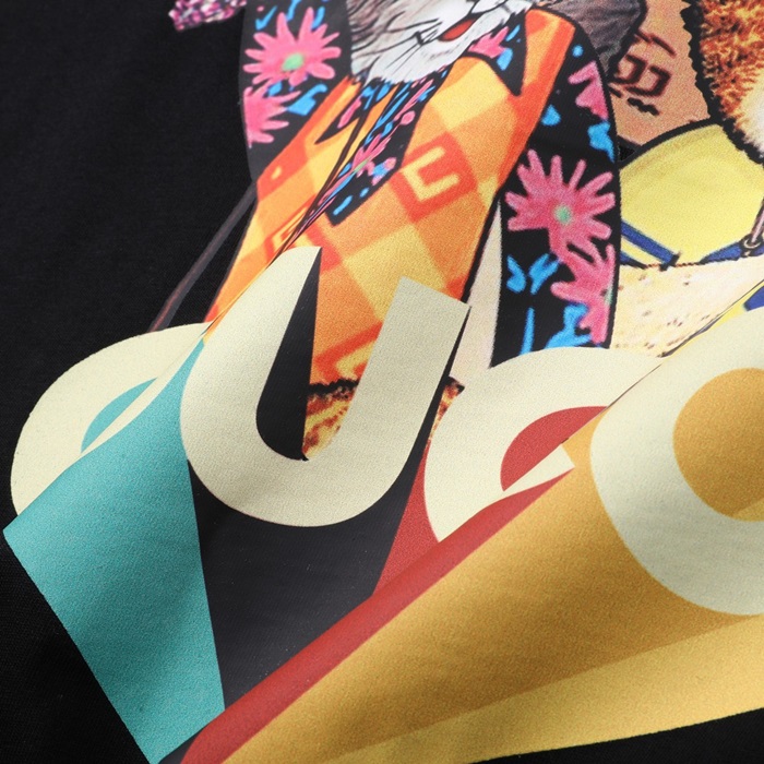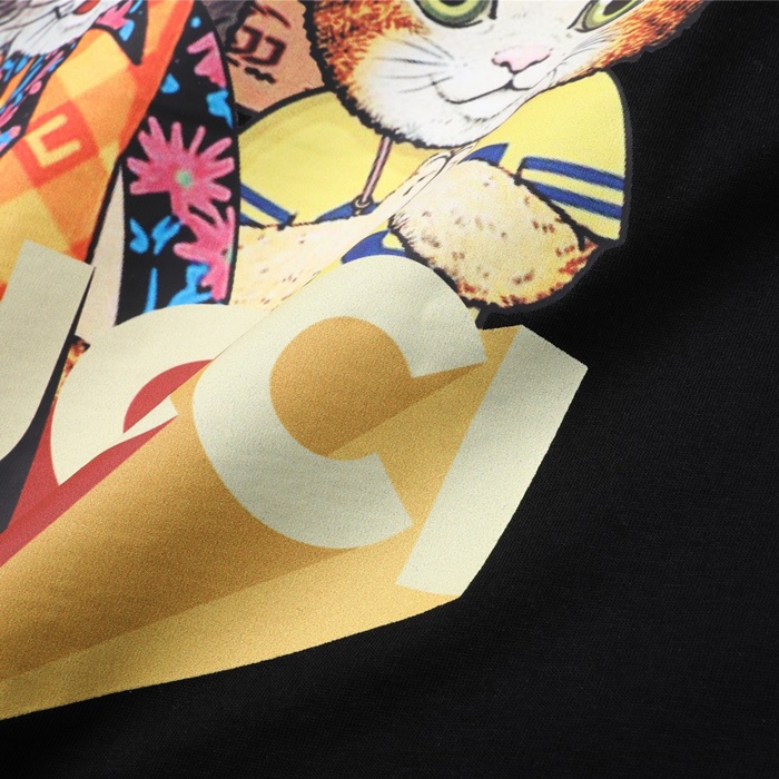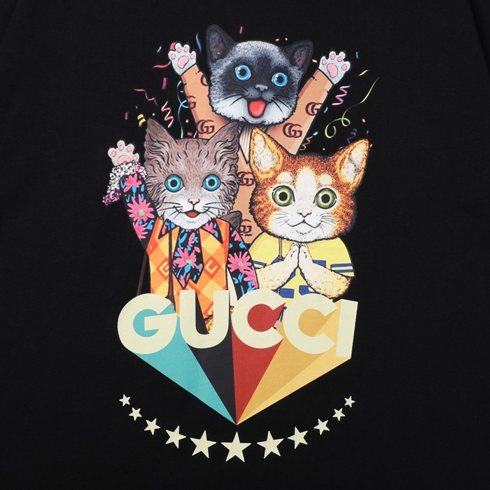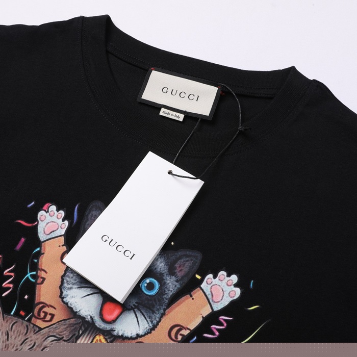 グッチレディースクルーネックブラック半袖Tシャツc04612