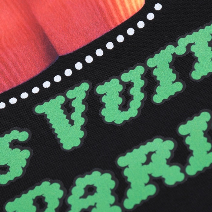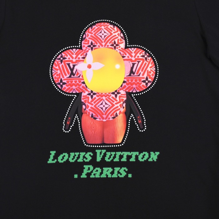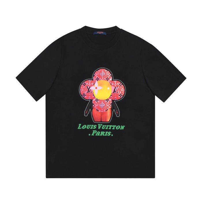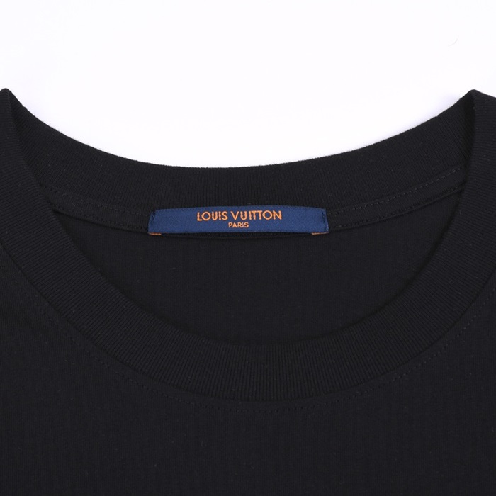 ルイヴィトンユニセックスクルーネックブラック半袖Tシャツu03953