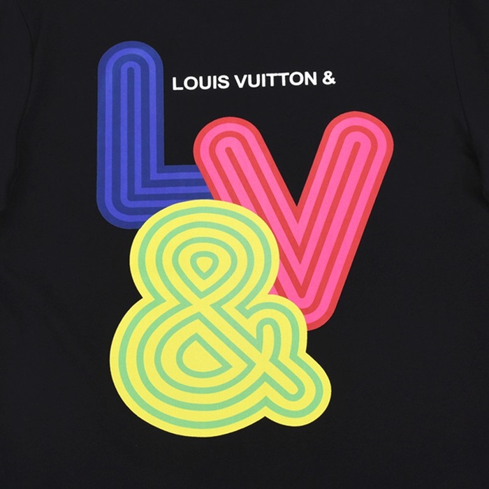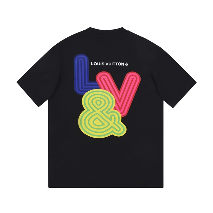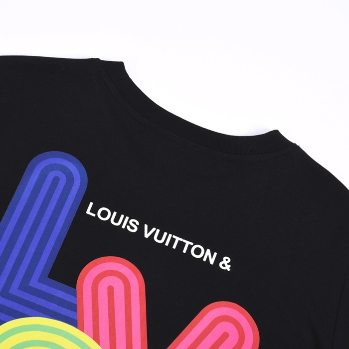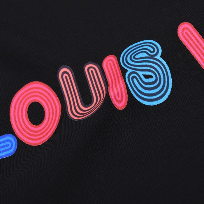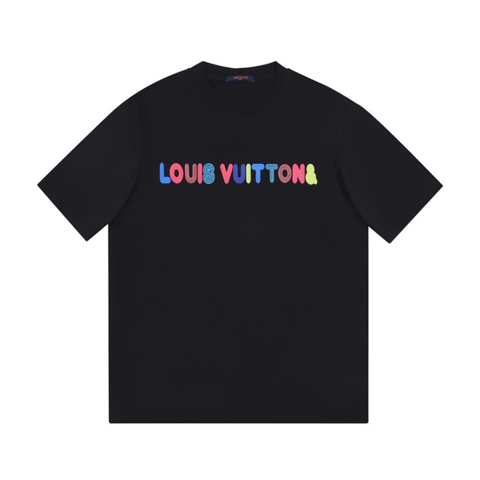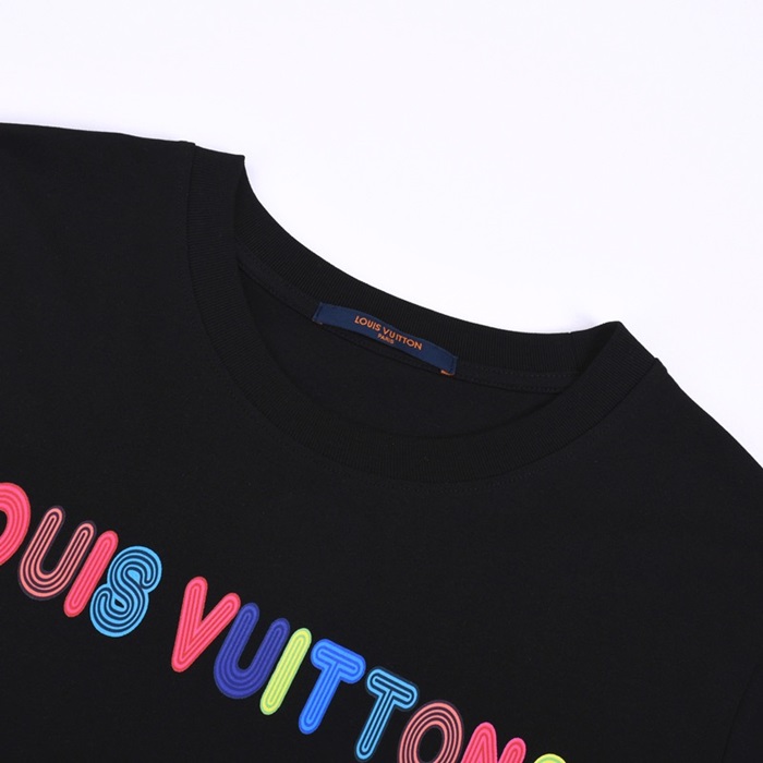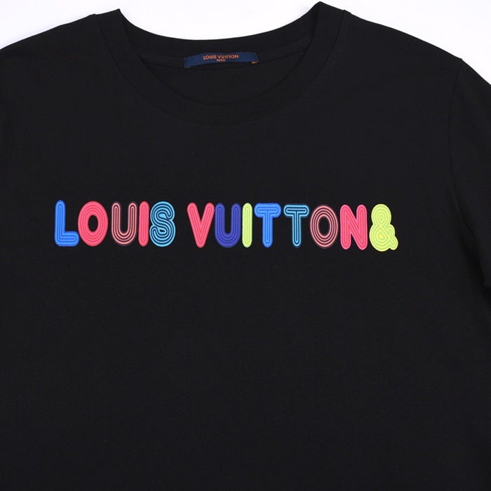 ルイヴィトンユニセックスクルーネックブラック半袖Tシャツu03957