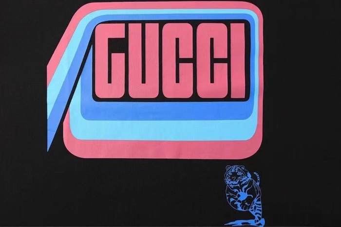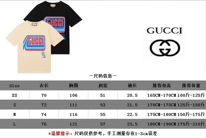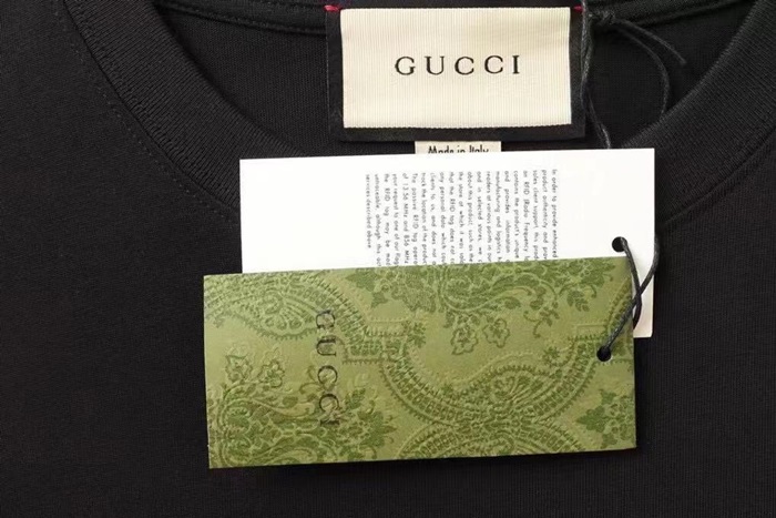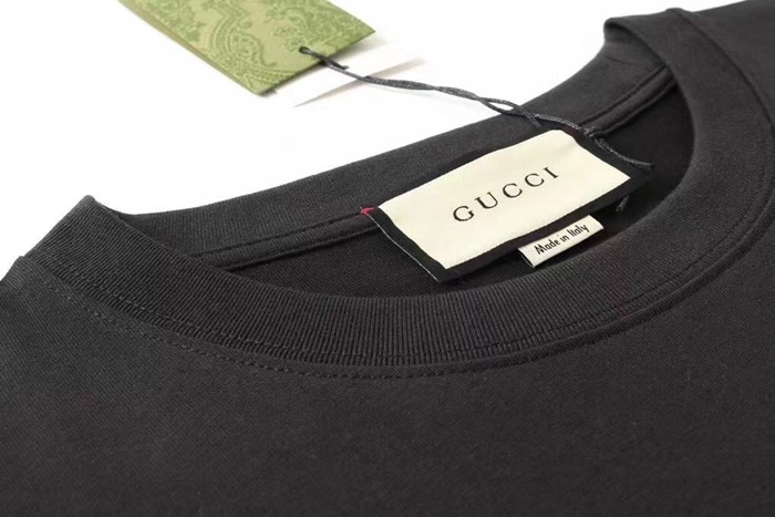 グッチユニセックスクルーネックブラック半袖Tシャツc04617