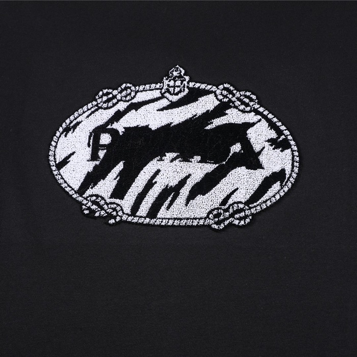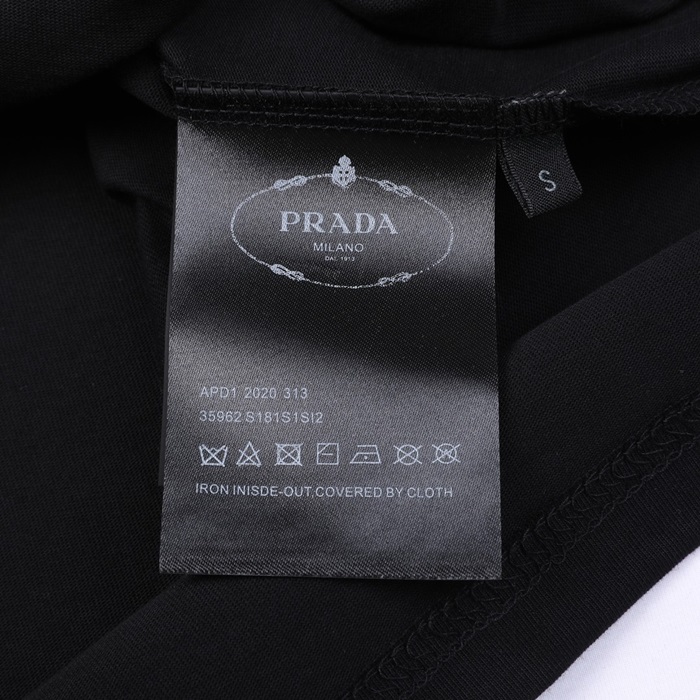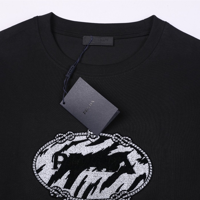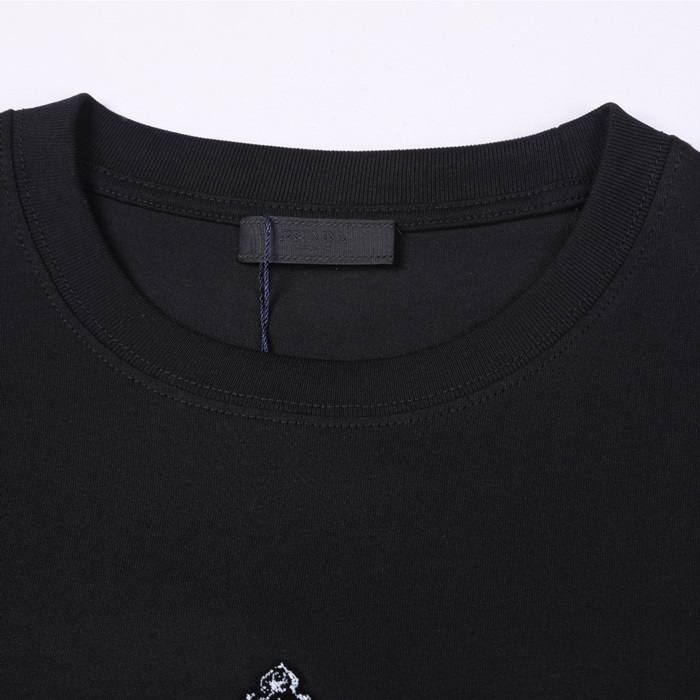 プラダユニセックスクルーネックブラック半袖Tシャツa02593