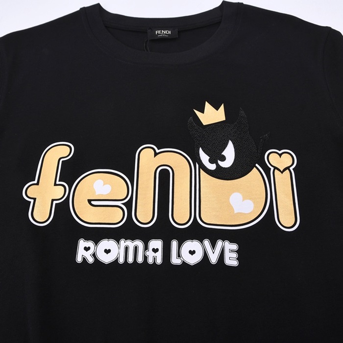 ェンディユニセックスクルーネックブラック半袖Tシャツn01135