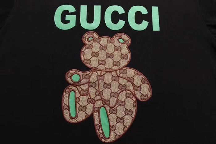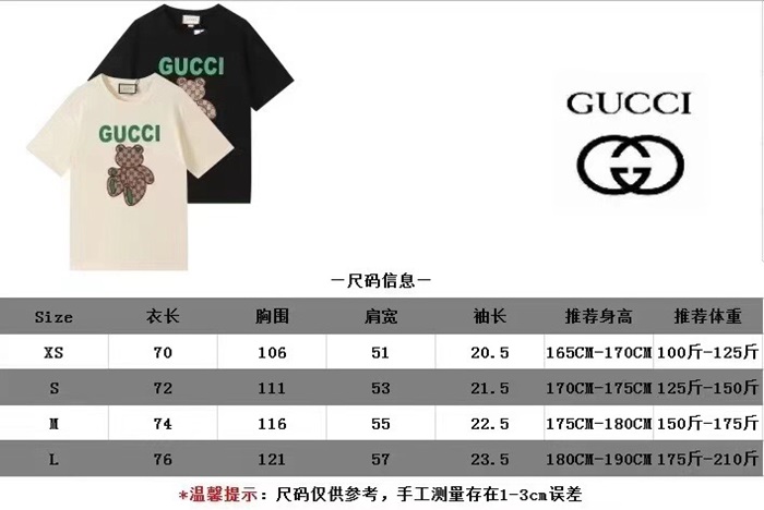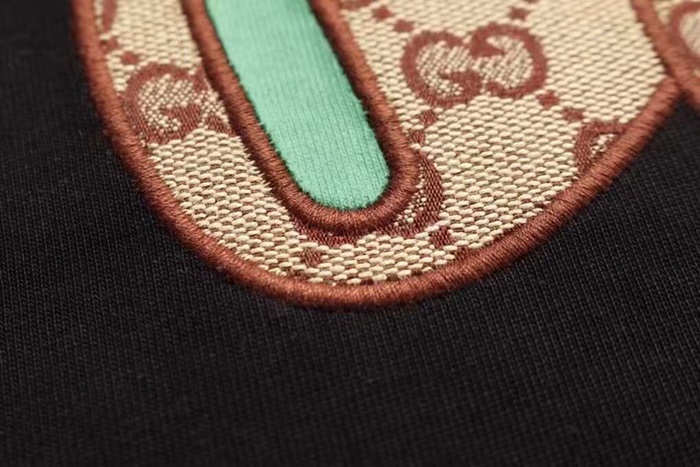 グッチユニセックスクルーネックブラック半袖Tシャツc04621