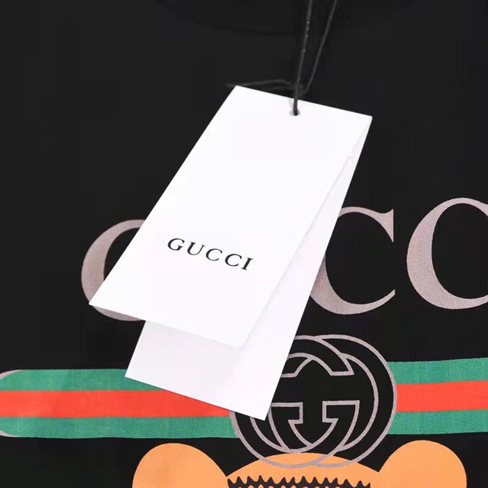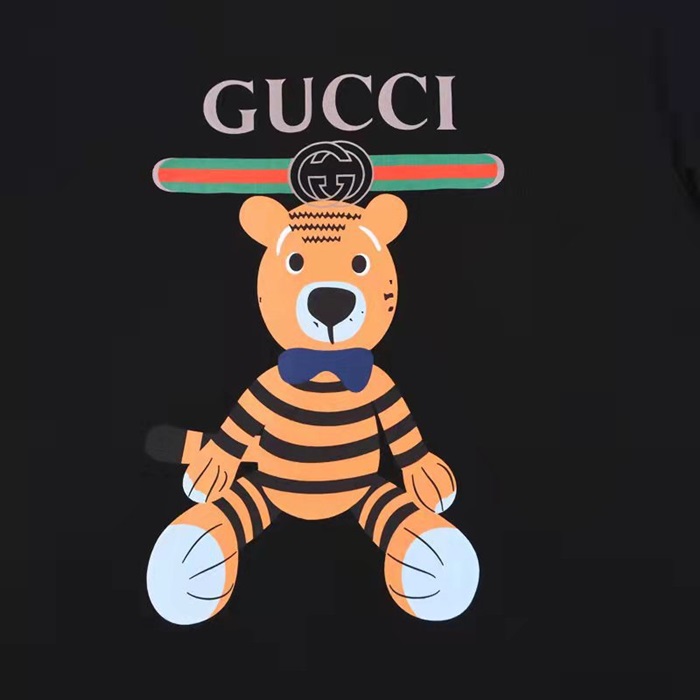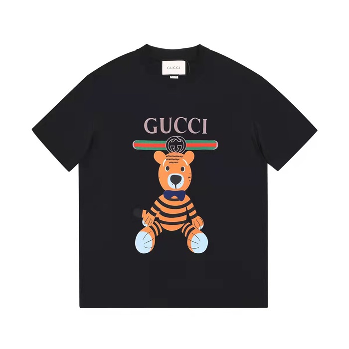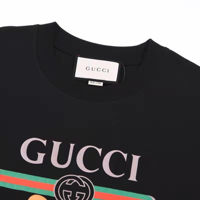 グッチユニセックスクルーネックブラック半袖Tシャツc04624