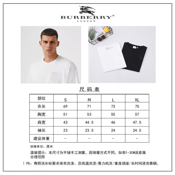 バーバリーメンズクルーネックホワイト半袖Tシャツr04218