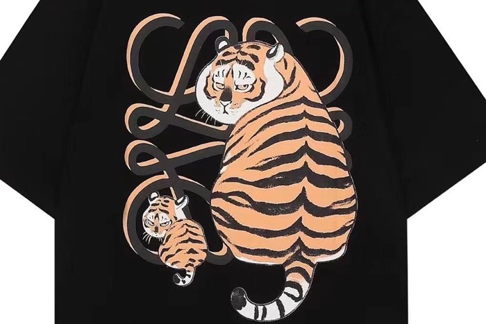 ロエベメンズイニシャルブラック半袖Tシャツe0572