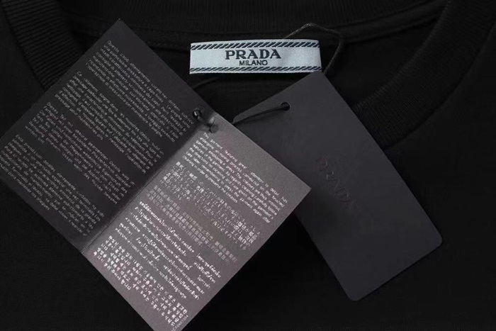 プラダメンズクルーネックブラック半袖Tシャツa02614