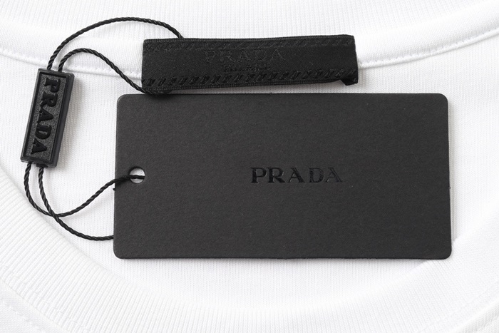 プラダメンズクルーネックホワイト半袖Tシャツa02619