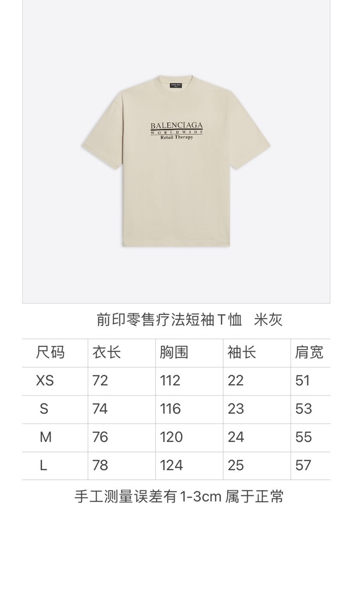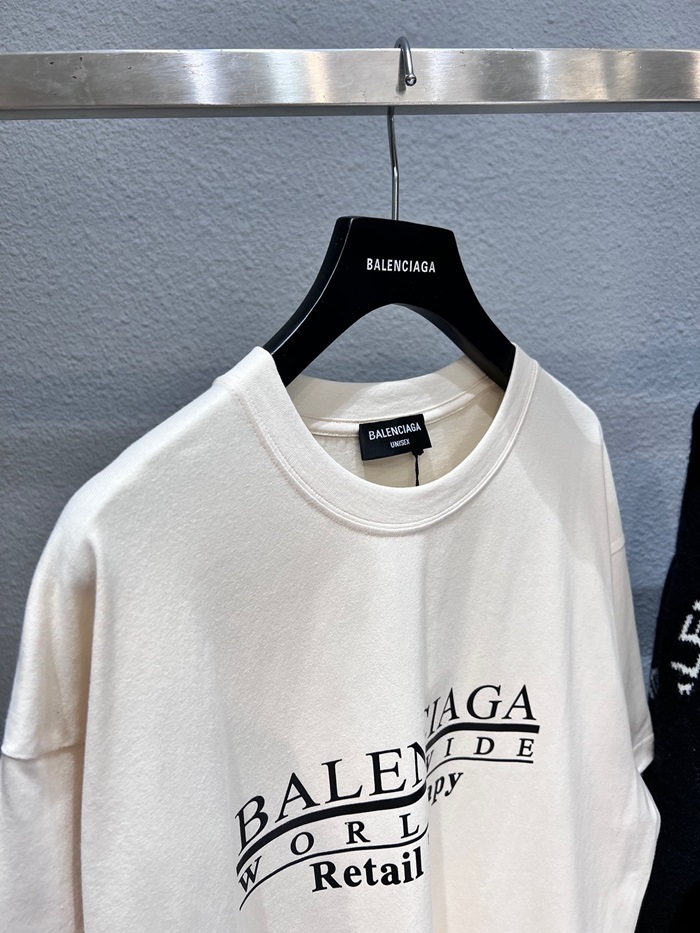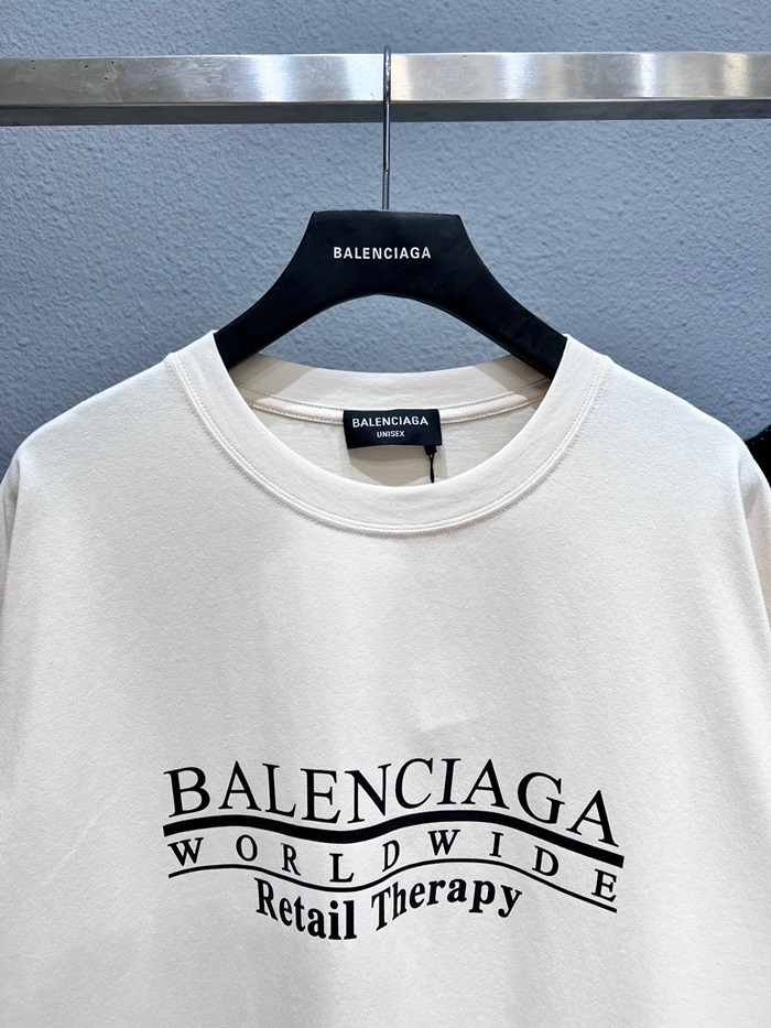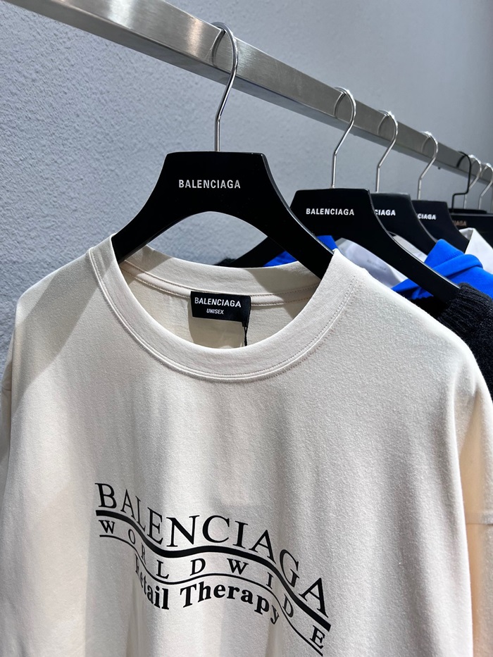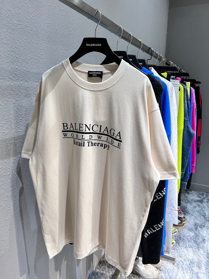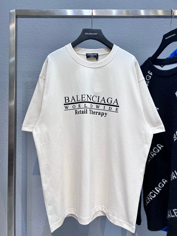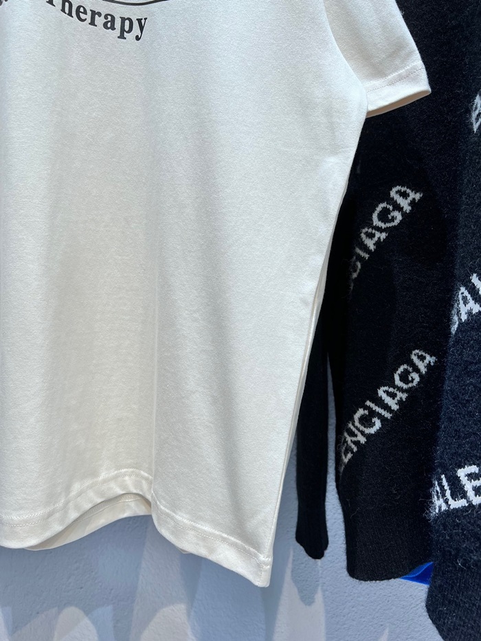 バレンシアガメンズクルーネックアイボリー半袖Tシャツl01331