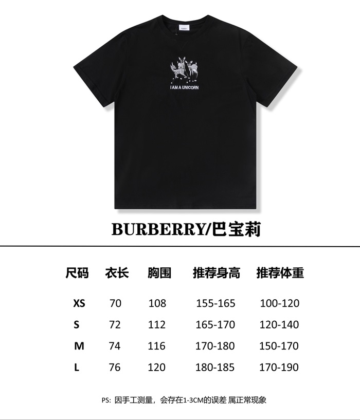 バーバリーメンズクルーネックブラック半袖Tシャツr04233