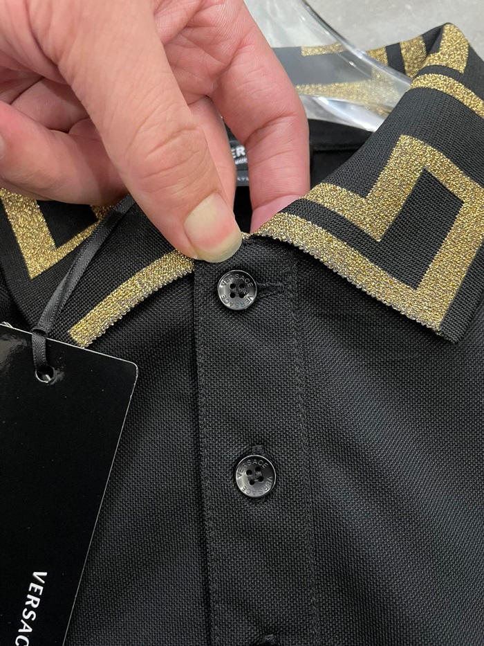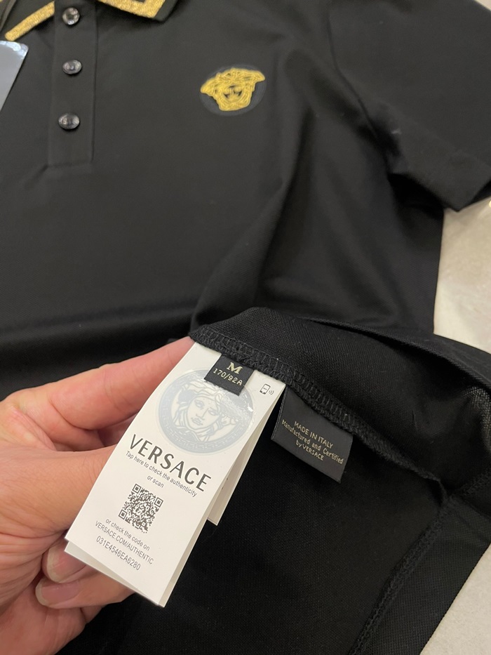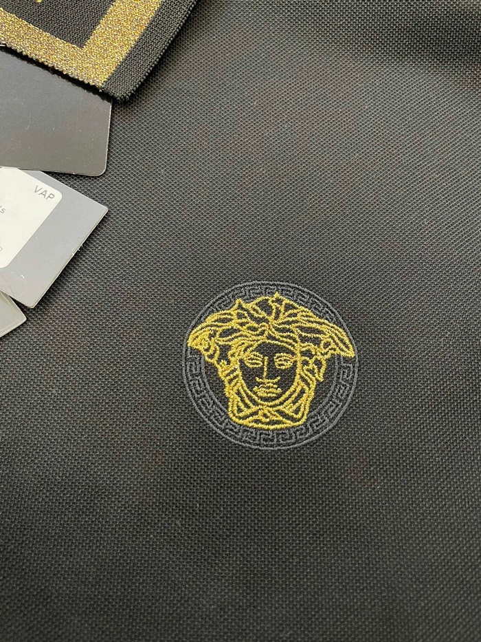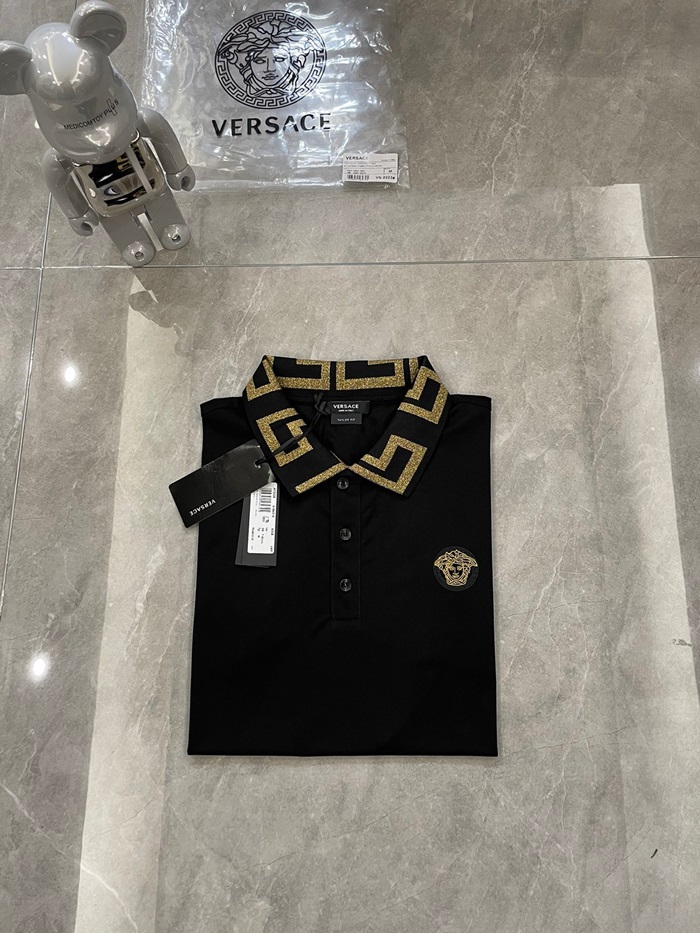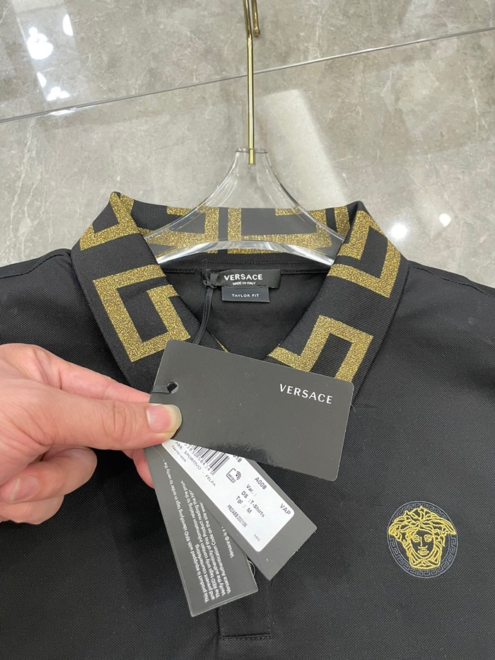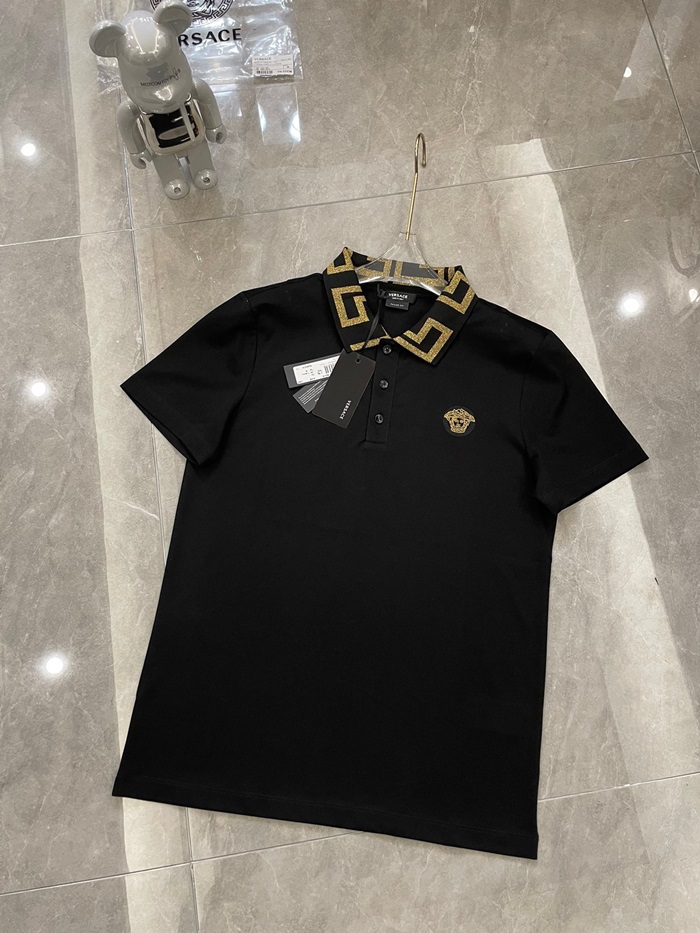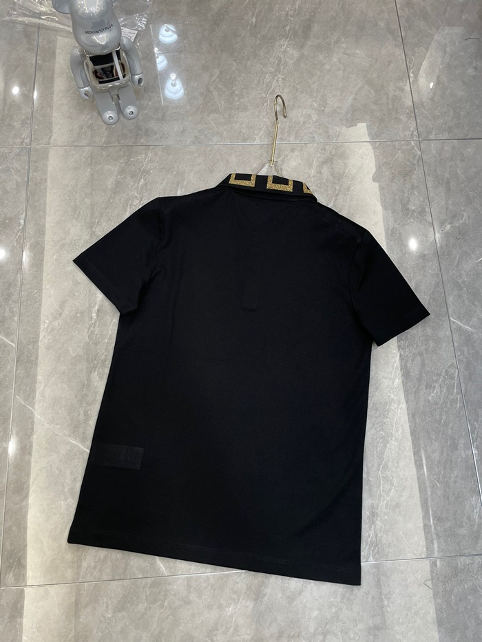 ヴェルサーチェメンズブラックポロ半袖Tシャツr0886