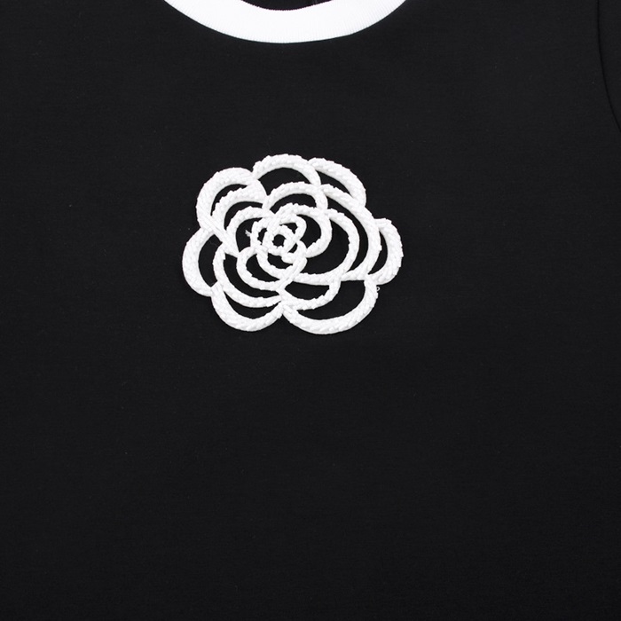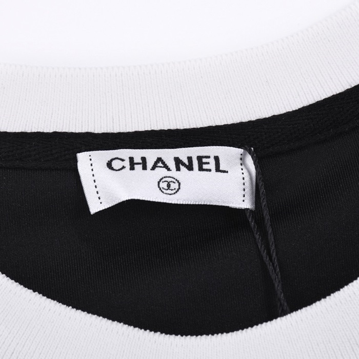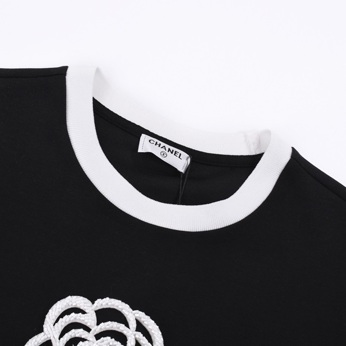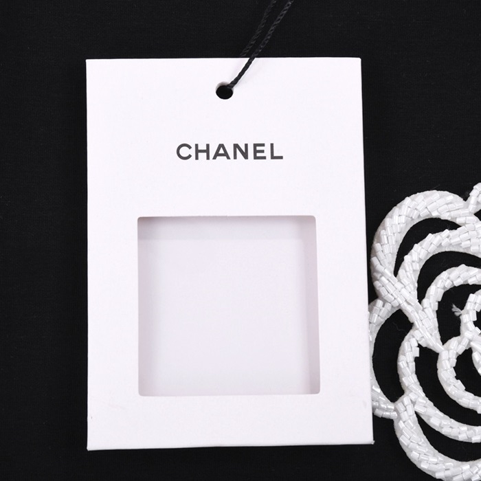 シャネルレディースクルーネックブラック半袖Tシャツl0852