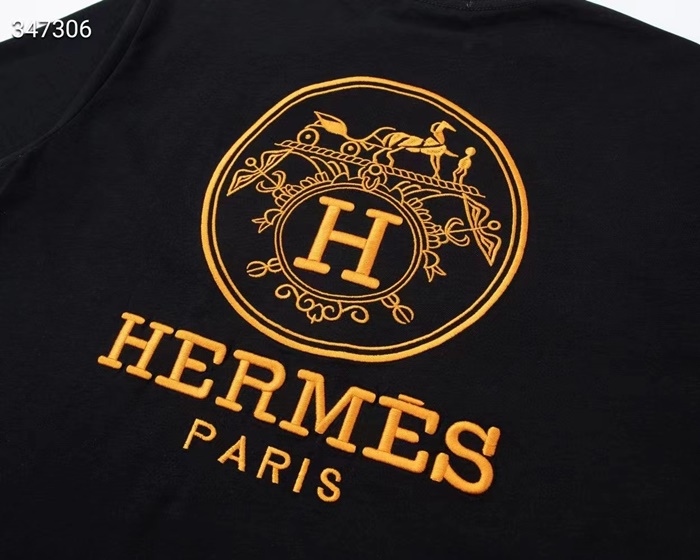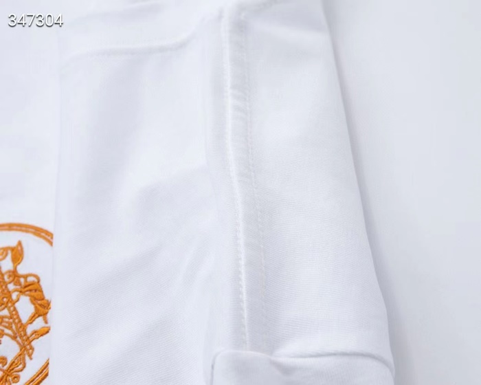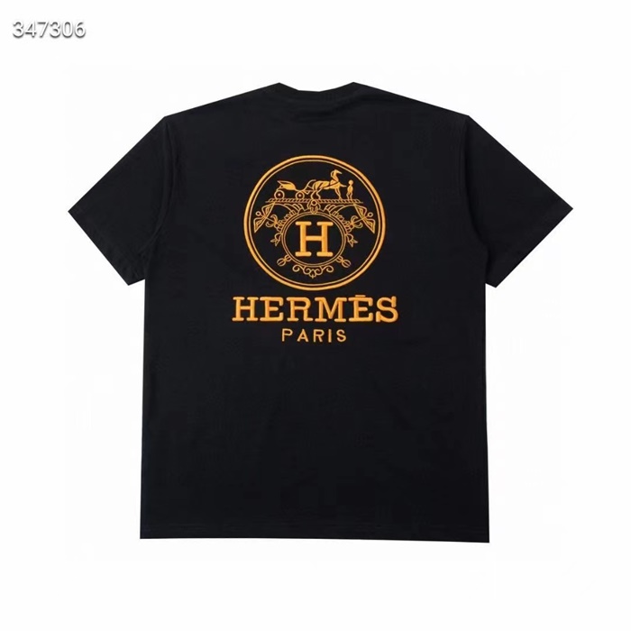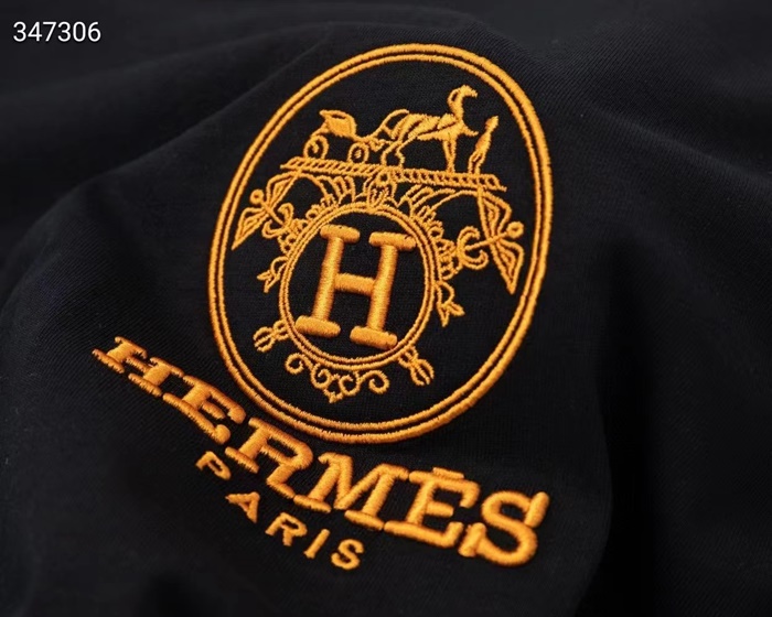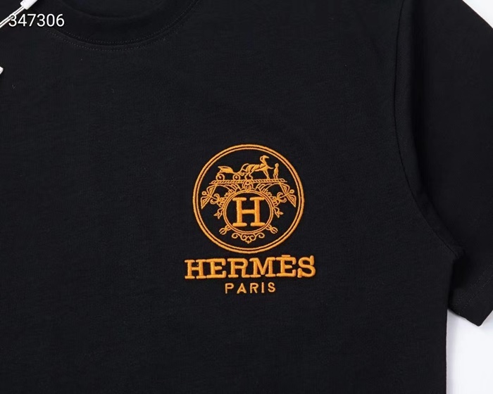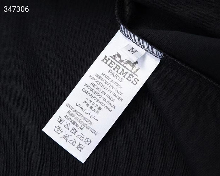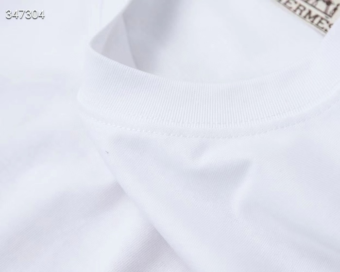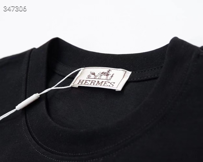 エルメスメンズクルーネックホワイト/ブラック半袖Tシャツr0738