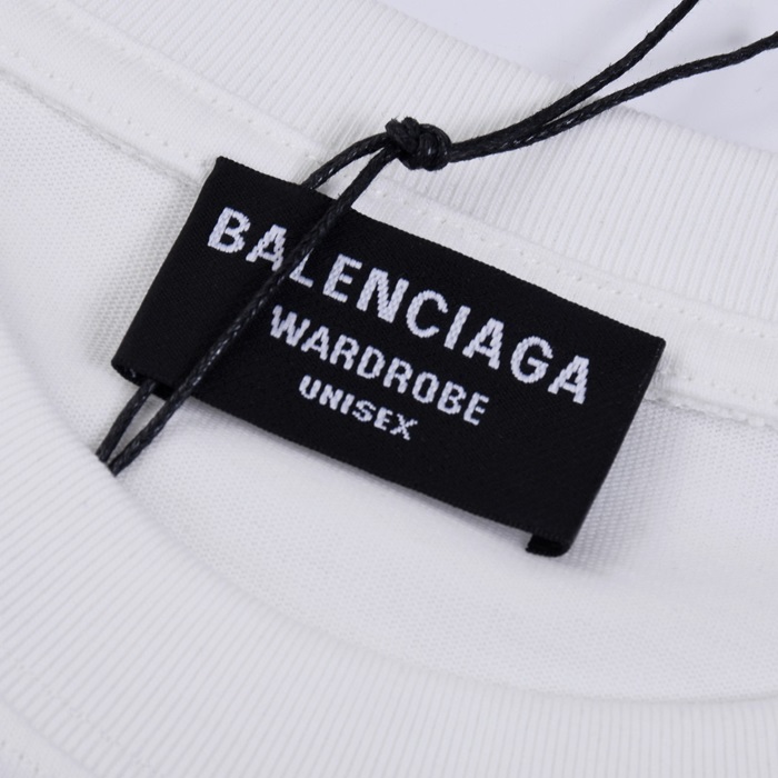 バレンシアガメンズクルーネックホワイト半袖Tシャツl01344