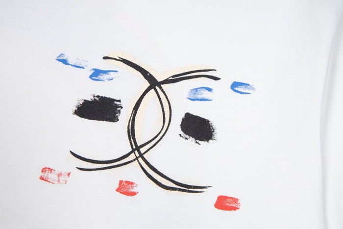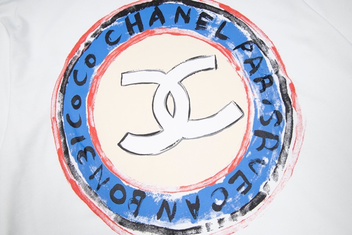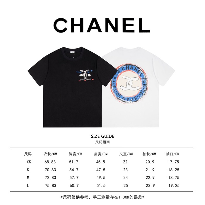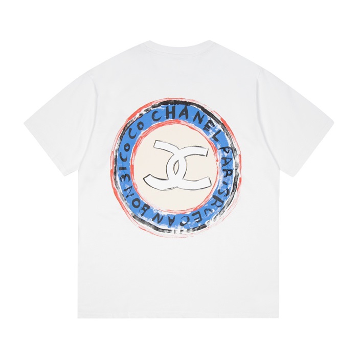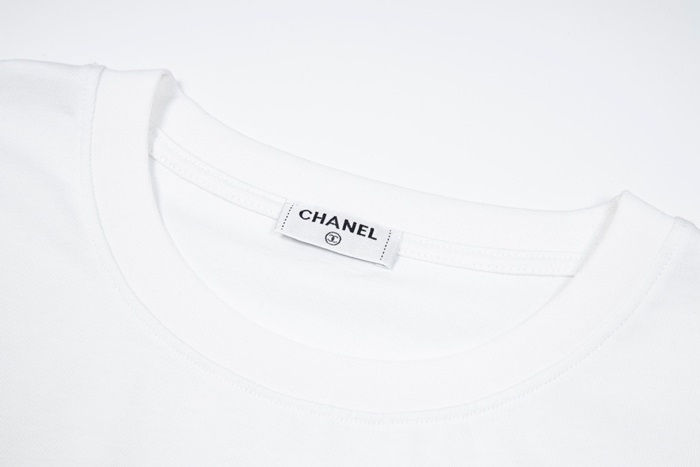 シャネルユニセックスクルーネックホワイト半袖Tシャツl0858
