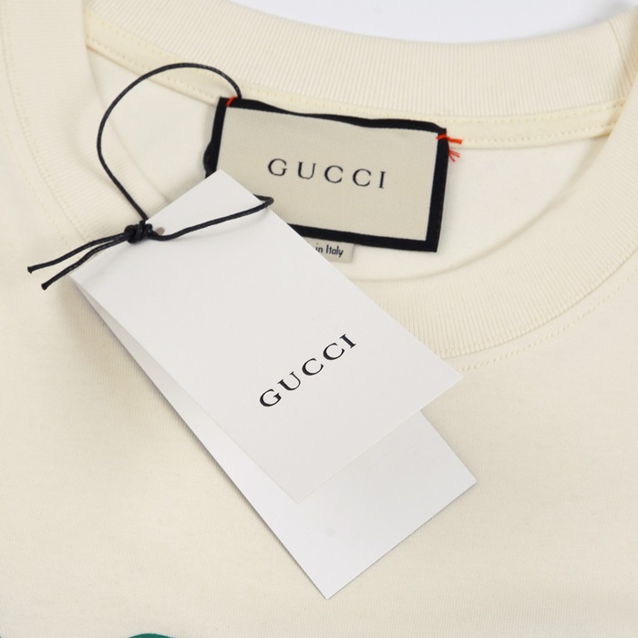 グッチメンズクルーネックアイボリー半袖Tシャツc04662