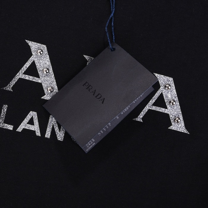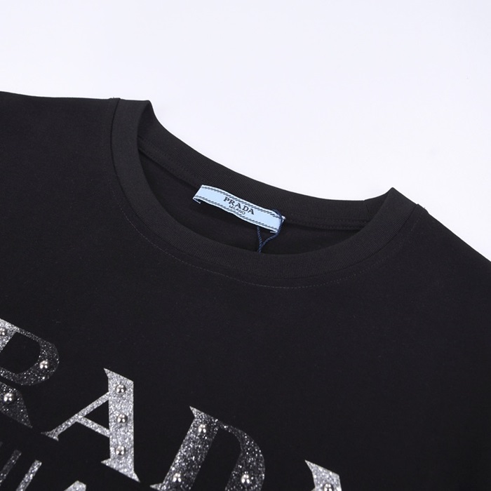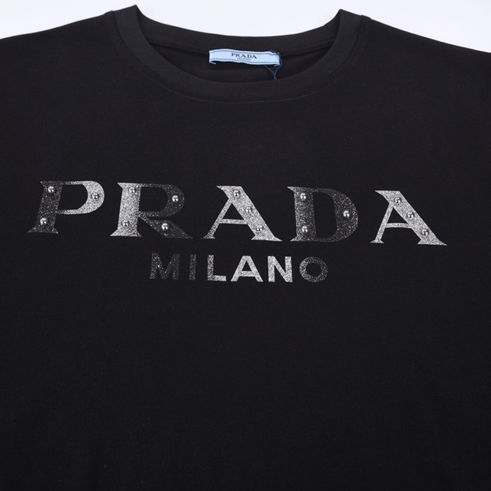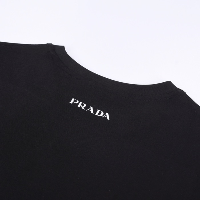 プラダメンズクルーネックブラック半袖Tシャツa02635
