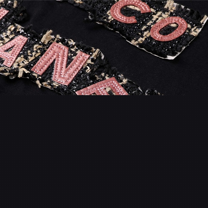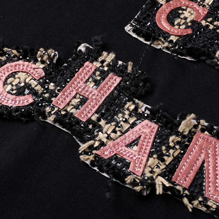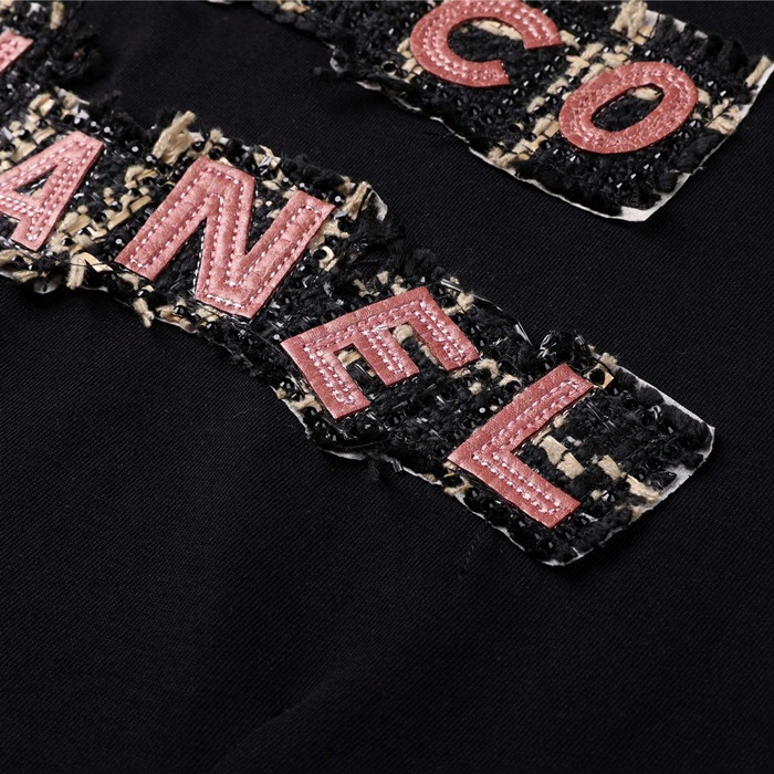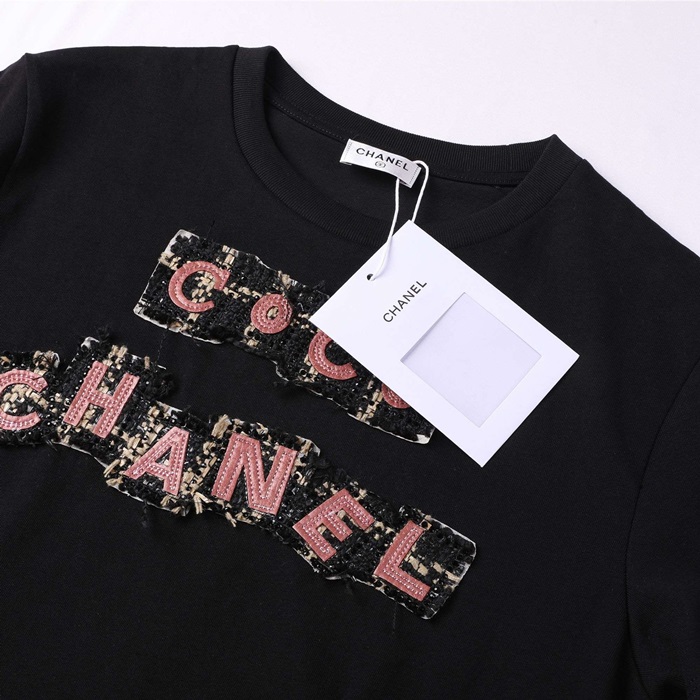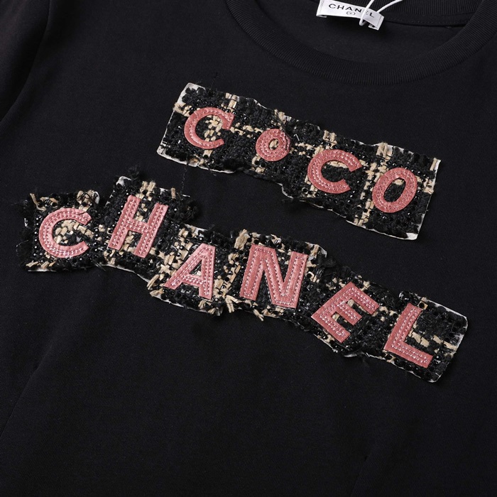 シャネルユニセックスクルーネックブラック半袖Tシャツl0862