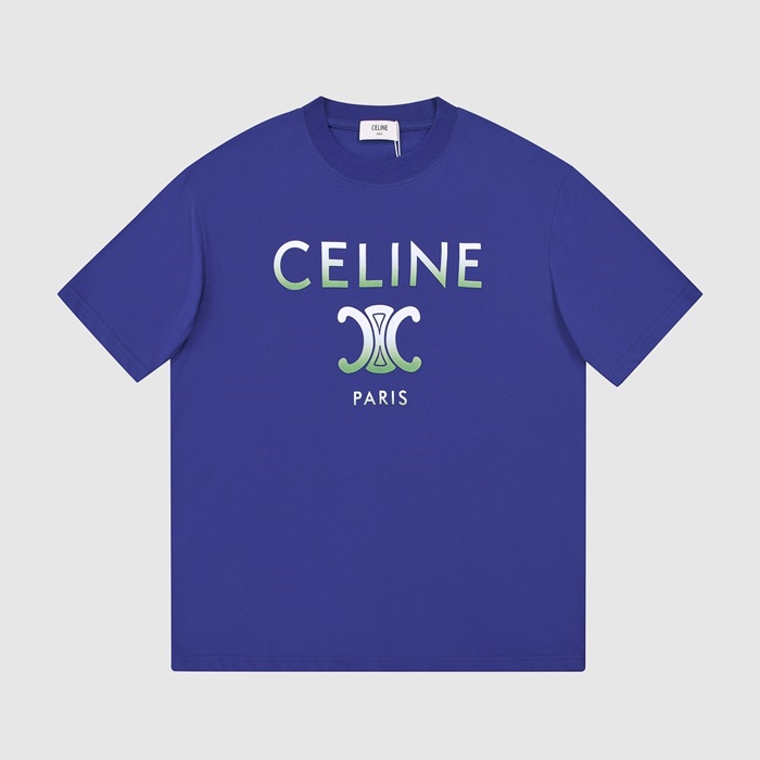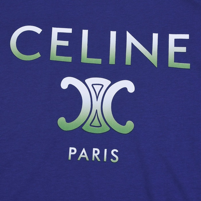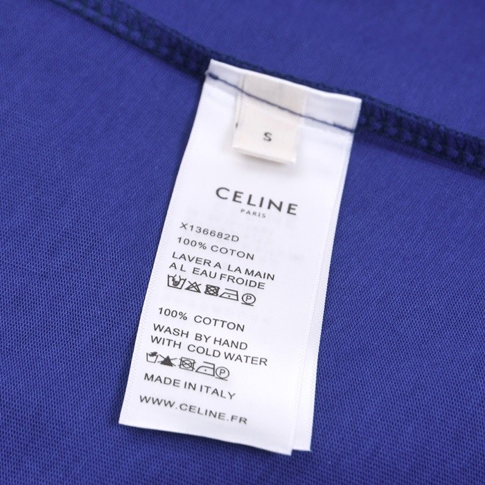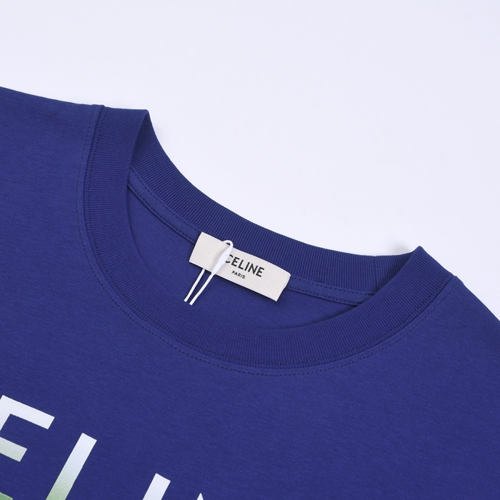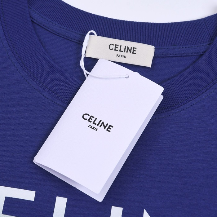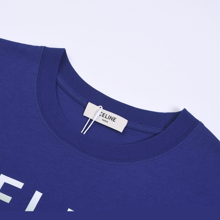 セリーヌユニセックスクルーネックブルー半袖Tシャツl0233