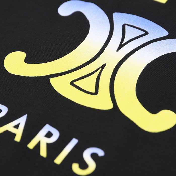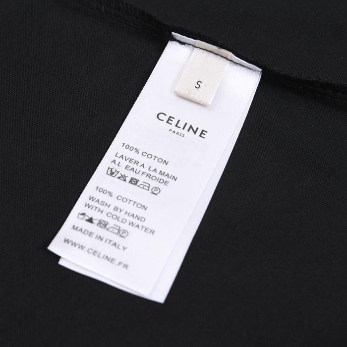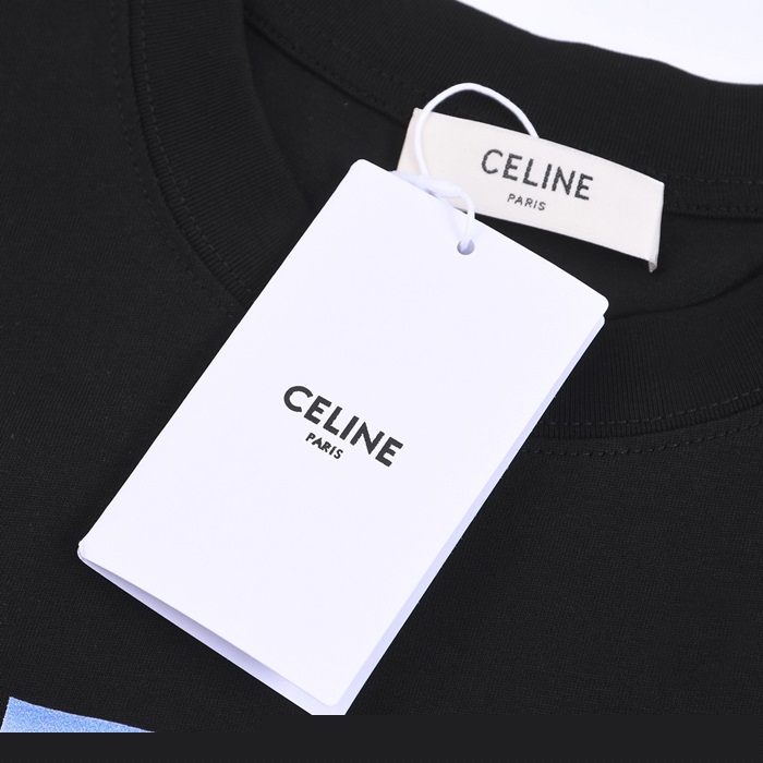 セリーヌユニセックスクルーネックブラック半袖Tシャツl0234