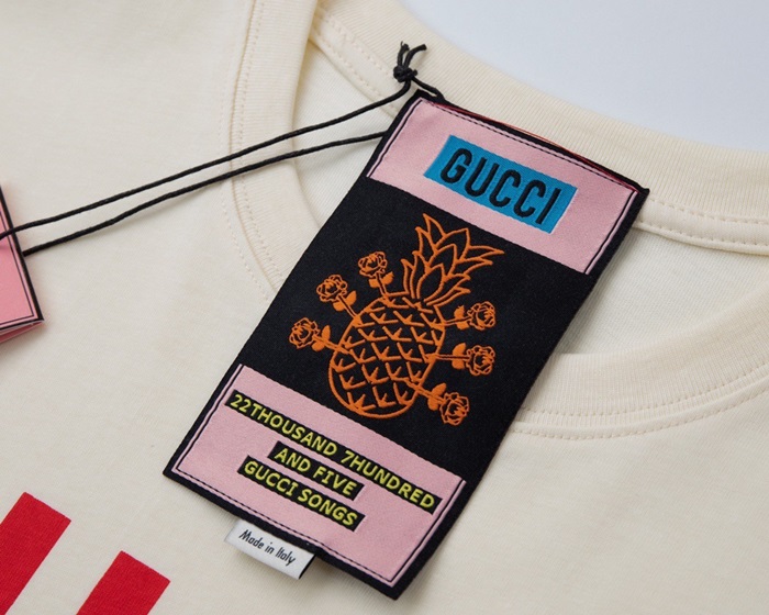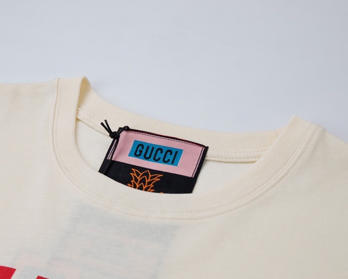 グッチメンズクルーネックアイボリー半袖Tシャツc04681