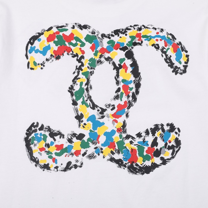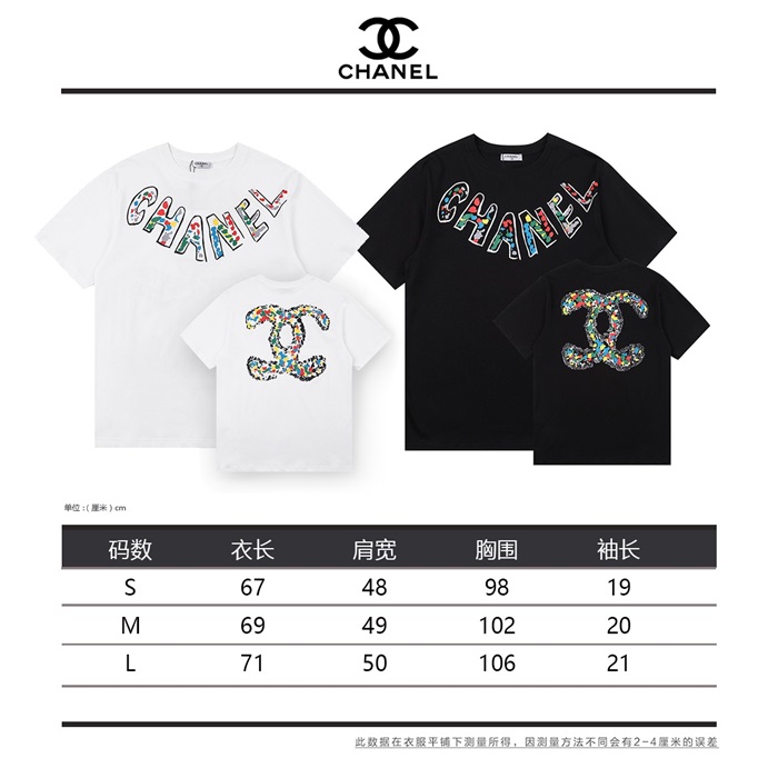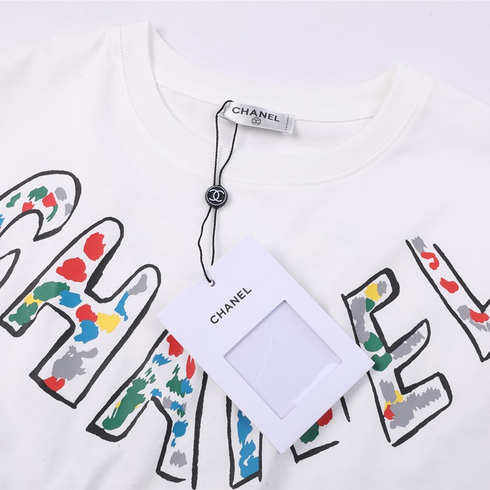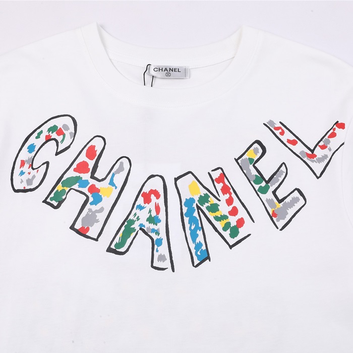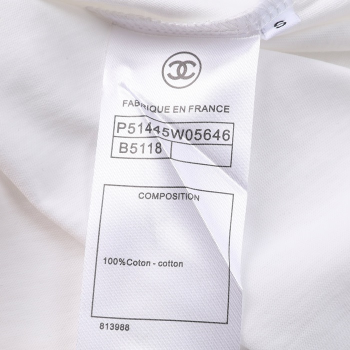 シャネルレディースクルーネックホワイト半袖Tシャツl0868