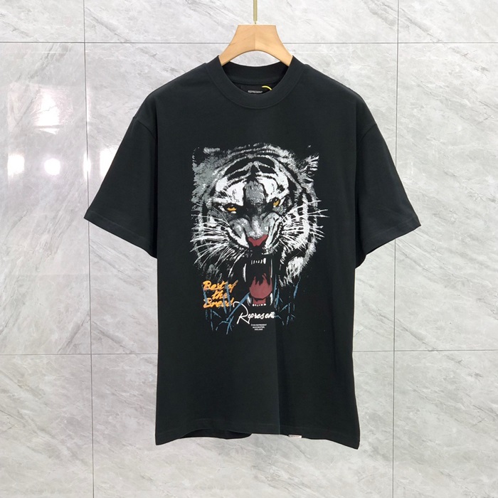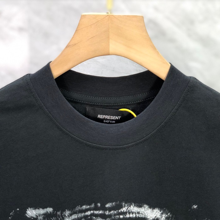 レプレゼントメンズブラッククルーネック半袖Tシャツp0043