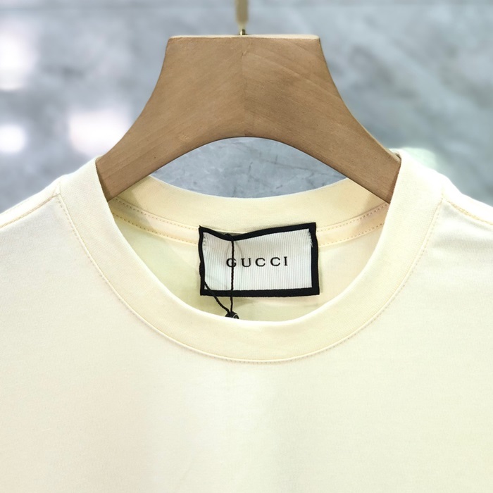 グッチメンズクルーネックアイボリー半袖Tシャツc04692