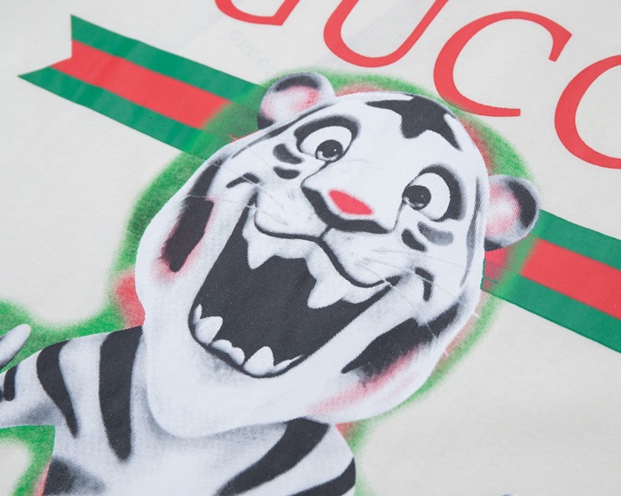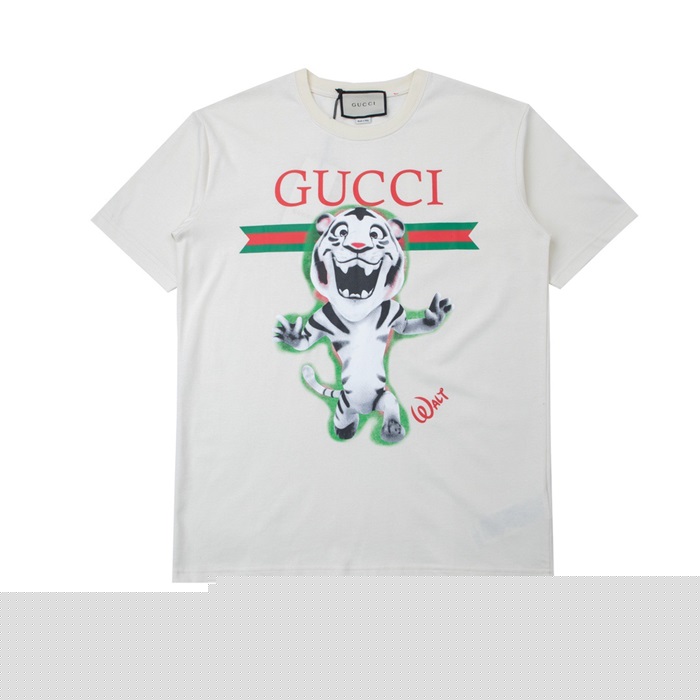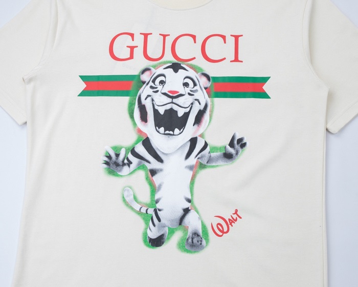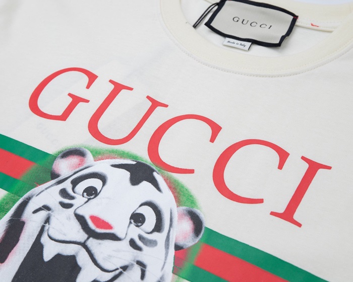 グッチメンズクルーネックアイボリー半袖Tシャツc04704