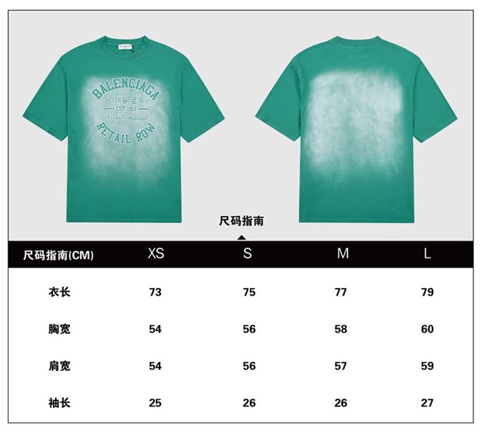 バレンシアガメンズクルーネックグリーン半袖Tシャツl01371
